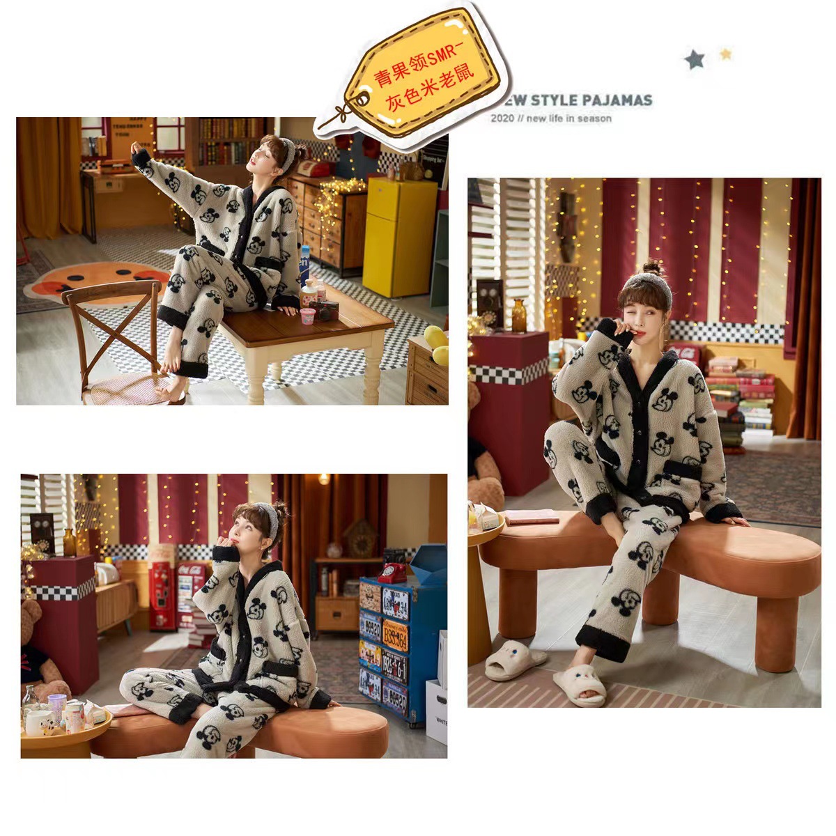 잠옷 여자의 겨울 산호 양털 겨울 기모 두꺼운 가을 겨울 귀여운 따뜻한 달콤한 봉제 외부 가정 옷스토어 가기