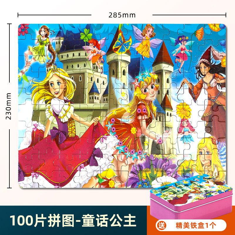 • 직소 퍼즐 100 조각 + [동화 공주] (절묘한 철 상자 + 그림 보내기)
