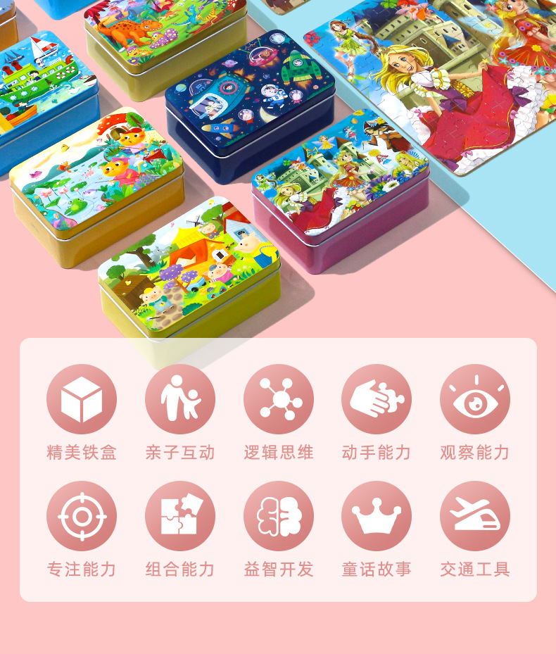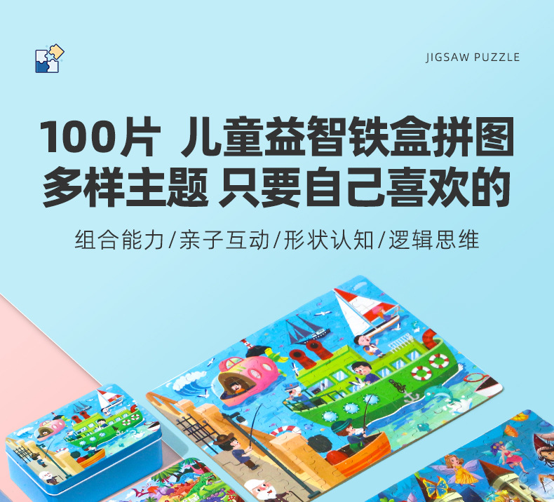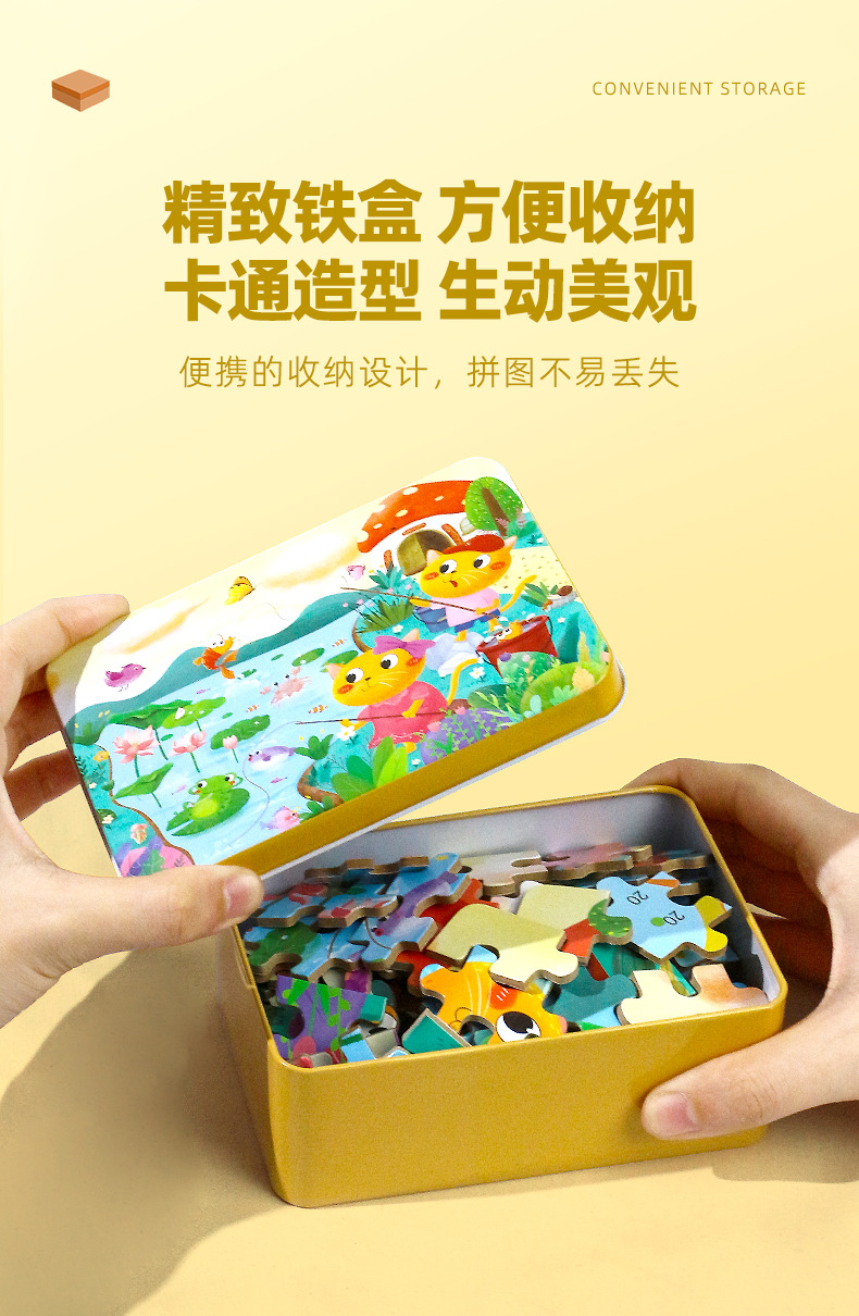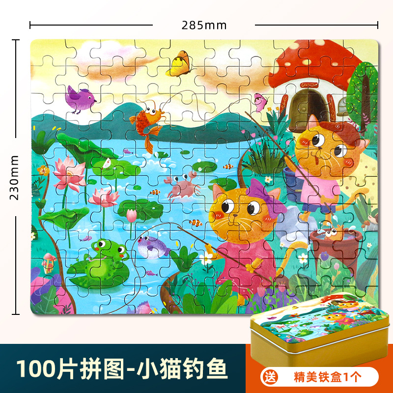 • 직소 퍼즐 100 조각 + [샤오 마오 낚시] (절묘한 철 상자 + 그림 보내기)