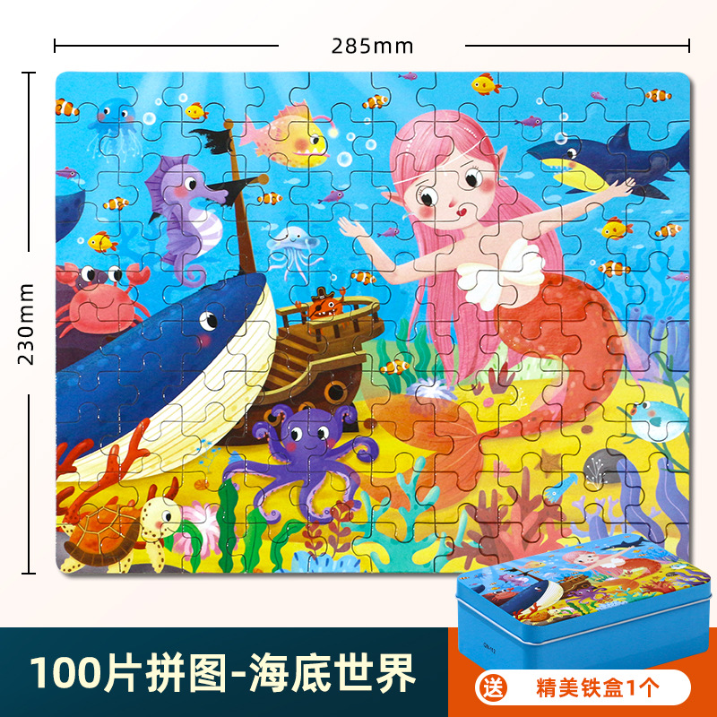• 직소 퍼즐 100 조각 + [수중 세계] (절묘한 철 상자 + 그림 보내기)