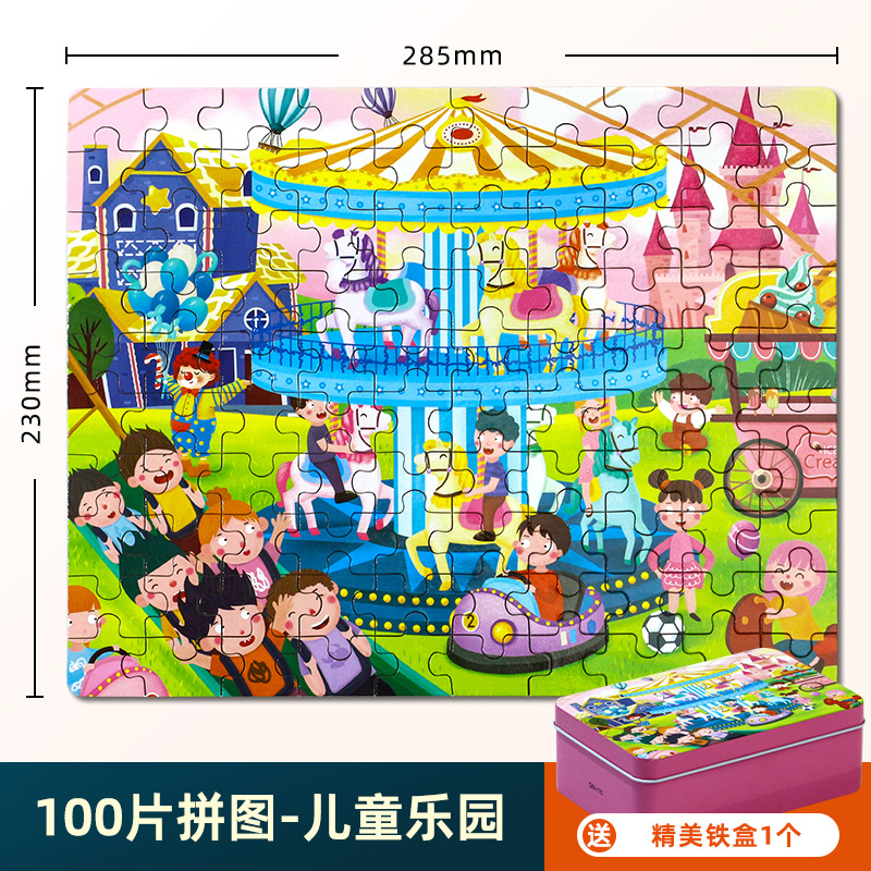 • 직소 퍼즐 100 조각 + [어린이 낙원] (절묘한 철 상자 + 그림 보내기)