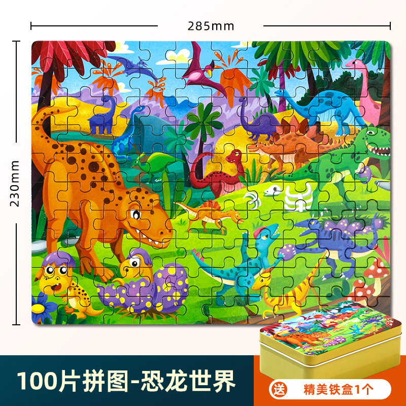 • 직소 퍼즐 100 조각 + [공룡 세계] (절묘한 철 상자 + 그림 보내기)