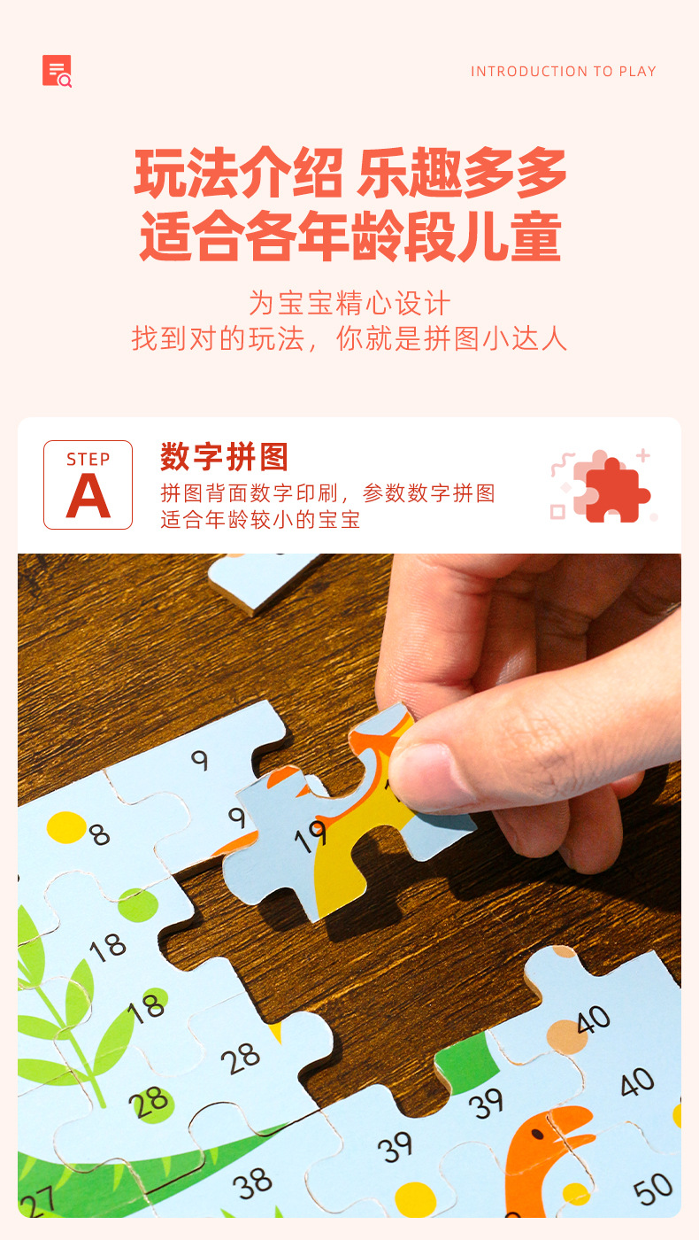 어린이 퍼즐 나무 퍼즐 100 조각 철 상자 저장 만화 번호 3-5-8 세 아기 소년과 소녀 장난감