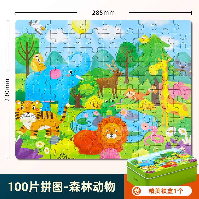 • 직소 퍼즐 100 조각 + [숲 동물] (절묘한 철 상자 + 그림 보내기)