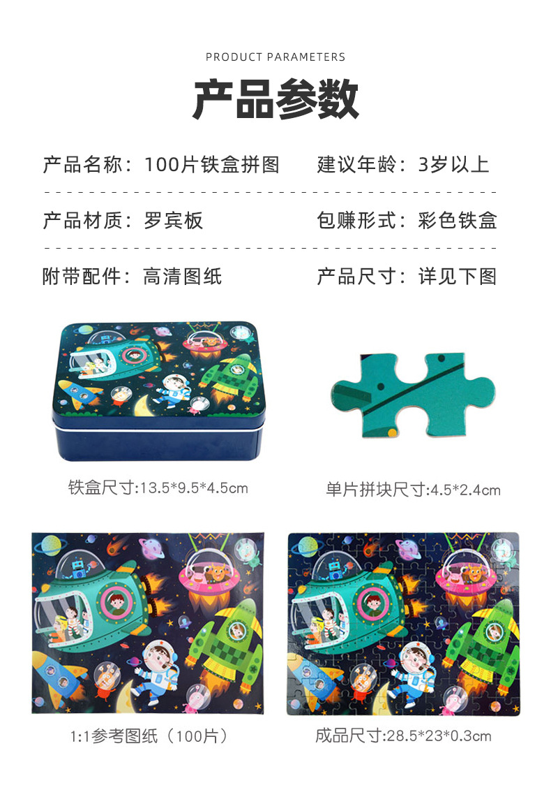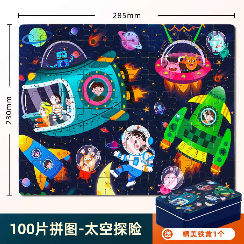 • 직소 퍼즐 100 장 + [우주 탐사] (절묘한 철 상자 + 도면 보내기)