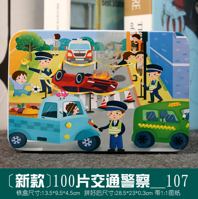 • 직소 퍼즐 100 조각 + [교통 경찰] (절묘한 철 상자 + 그림 보내기)