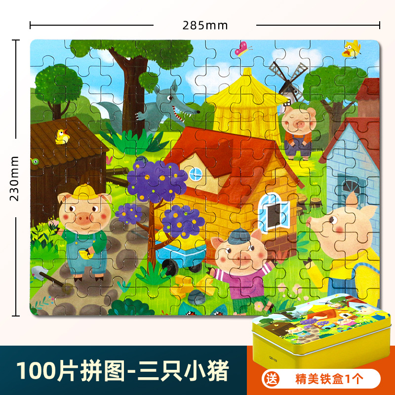 • 직소 퍼즐 100 조각 + [작은 돼지 3 마리] (절묘한 철 상자 + 그림 보내기)