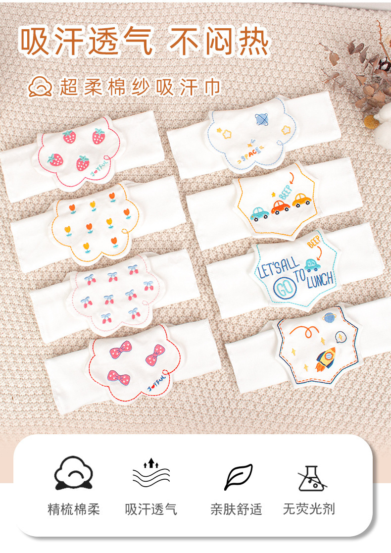 어린이 땀 흡수 타월 아기 면 거즈 땀 차단 타월 자수 유치원 남녀 보물 통기성 쿠션 백 타올 카테고리 A
