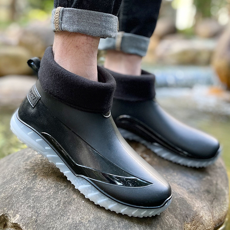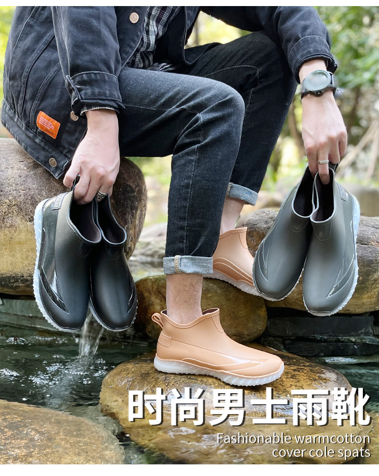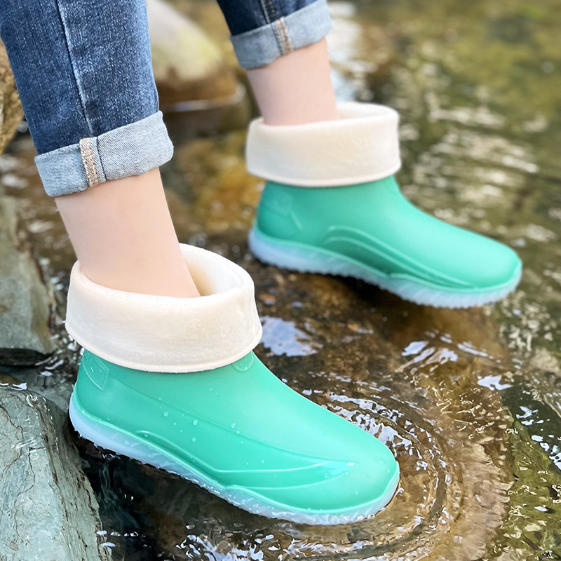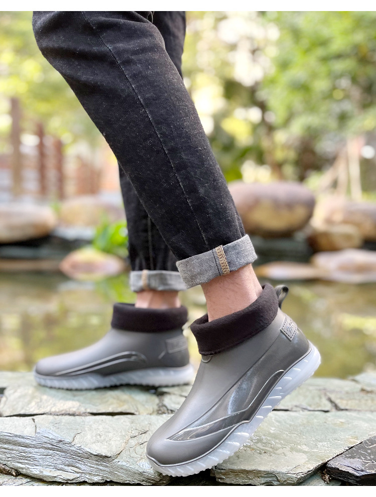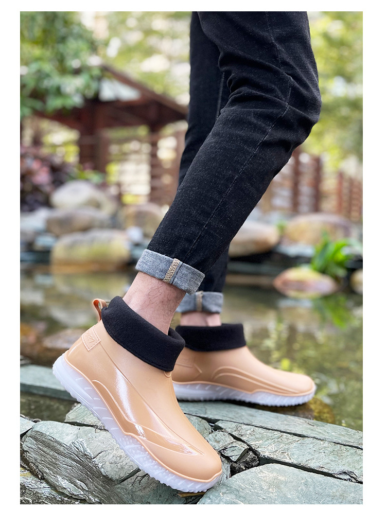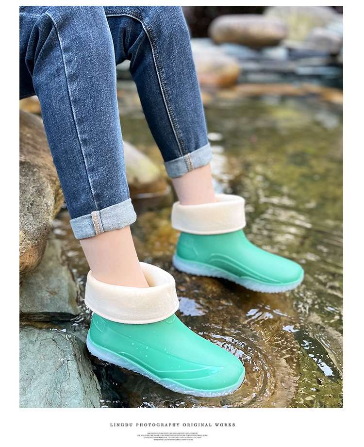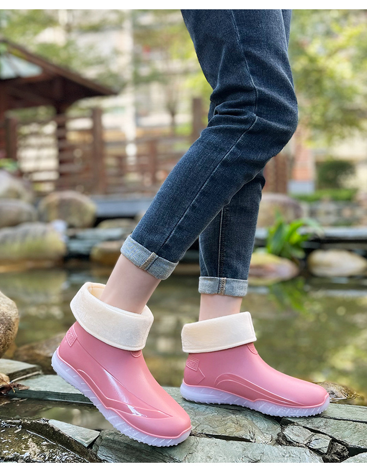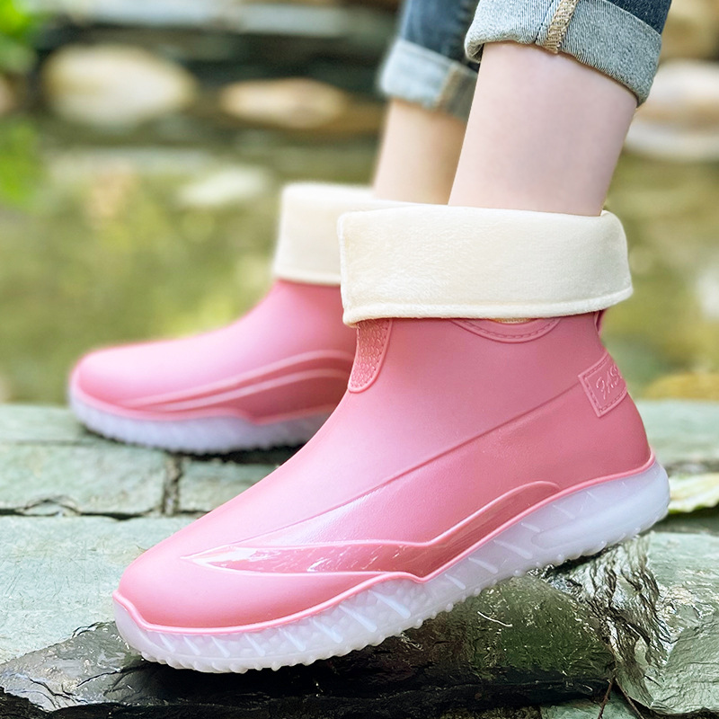 짧은 튜브 남자의 레인 슈즈 여성의 방수 미끄럼 방지 패션 겉옷 기모 레인 부츠 학생 고무 신발 도매스토어 가기
