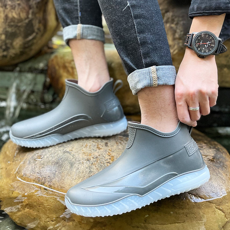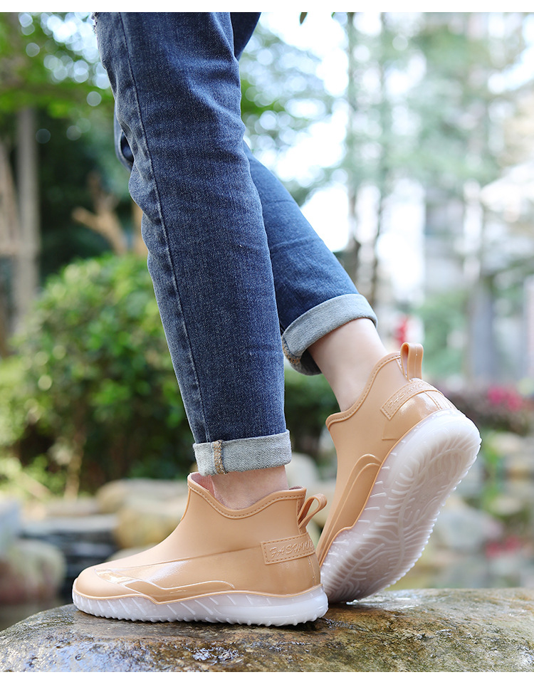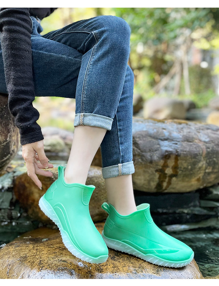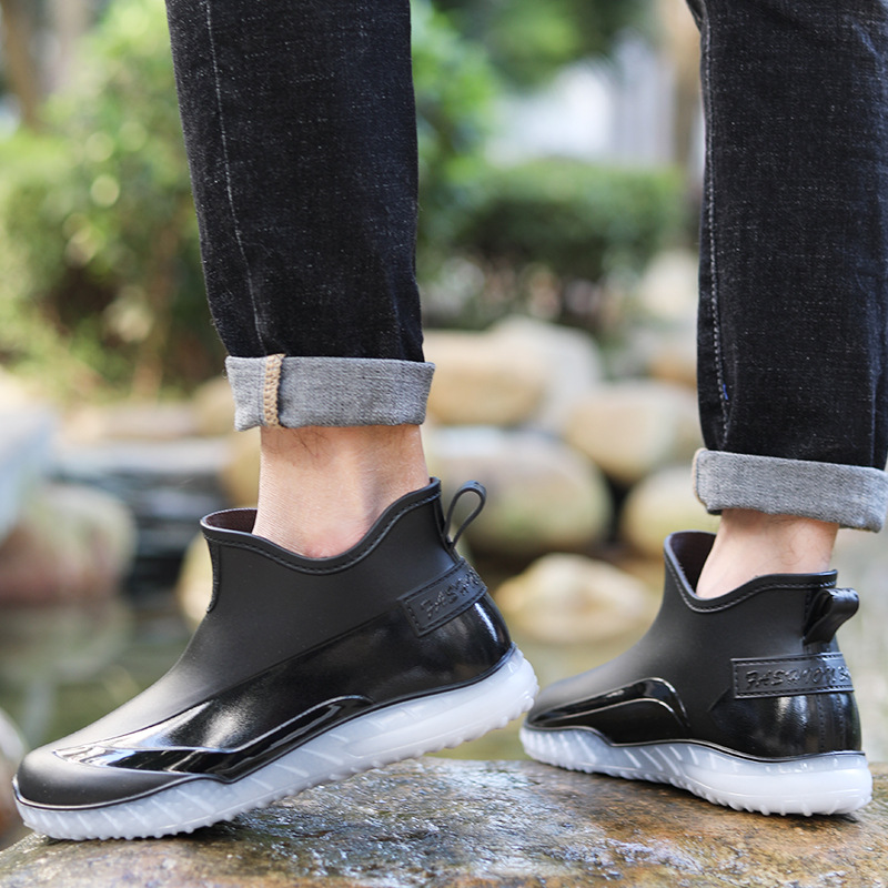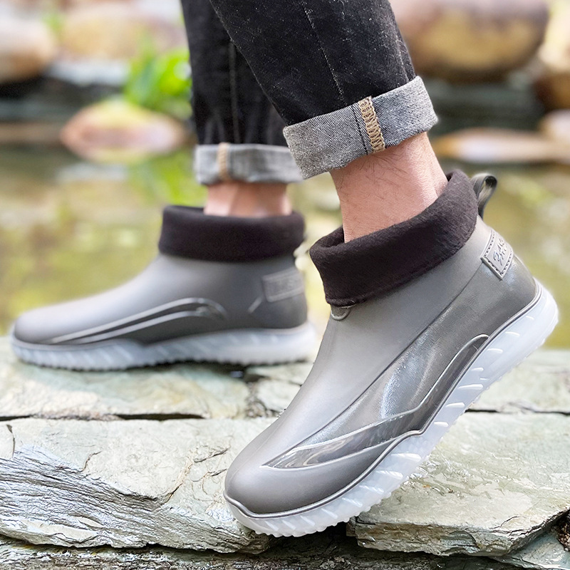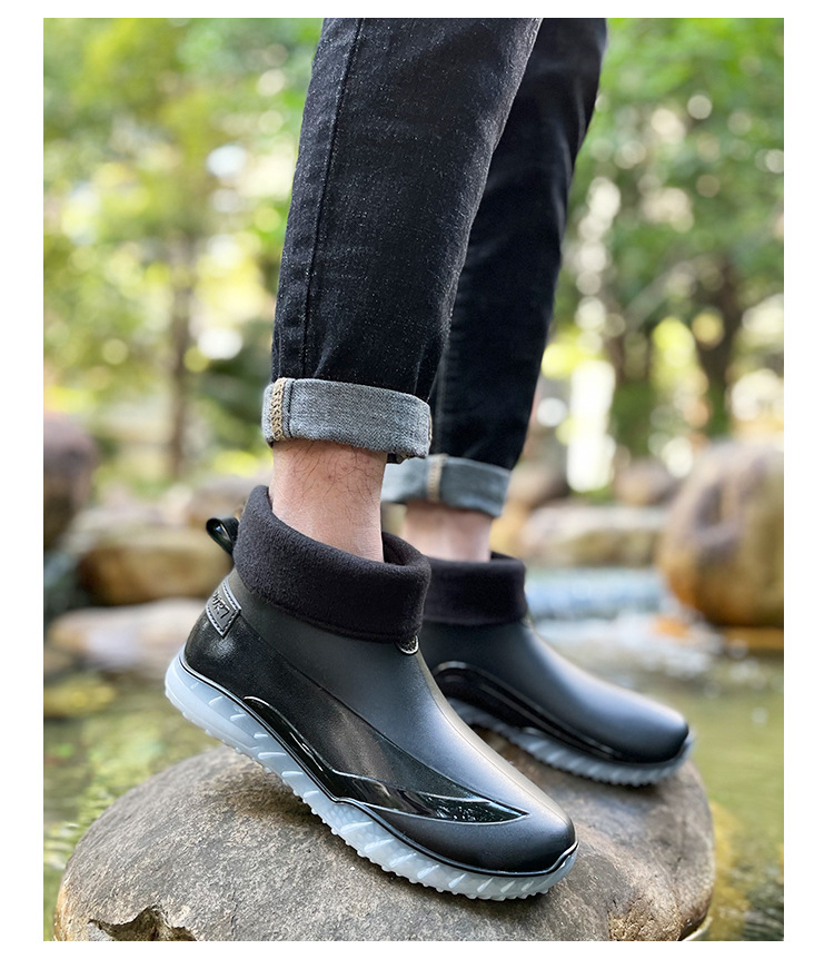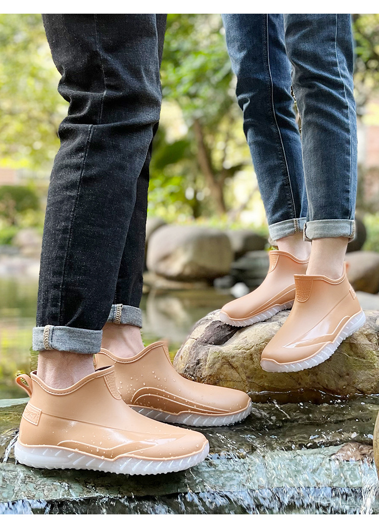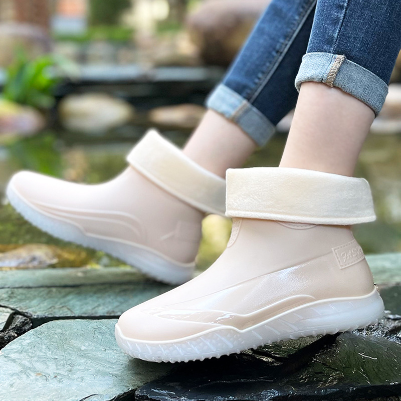 짧은 튜브 남자의 레인 슈즈 여성의 방수 미끄럼 방지 패션 겉옷 기모 레인 부츠 학생 고무 신발 도매스토어 가기