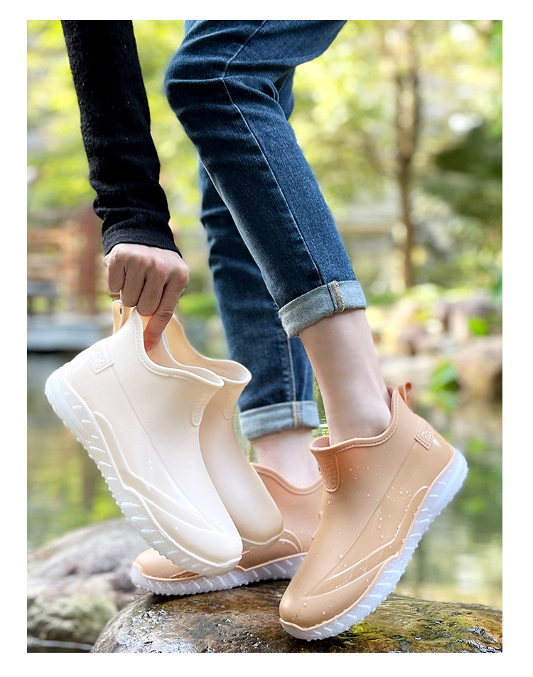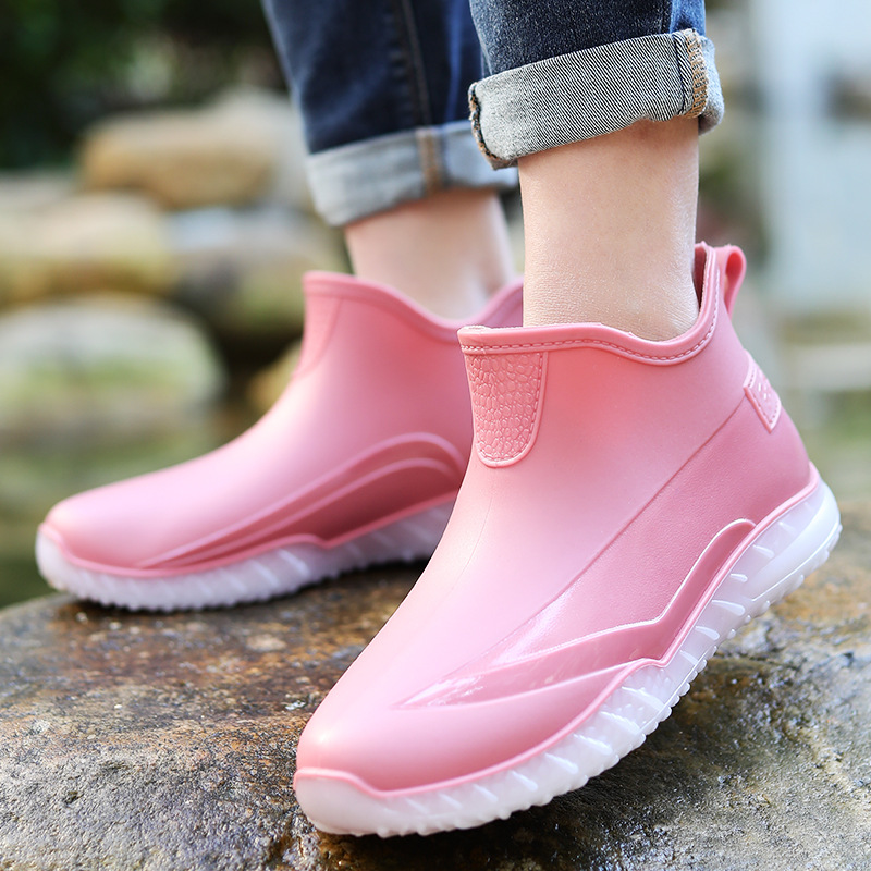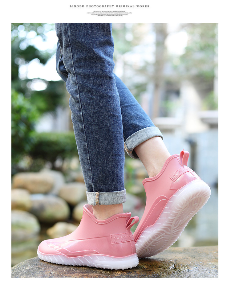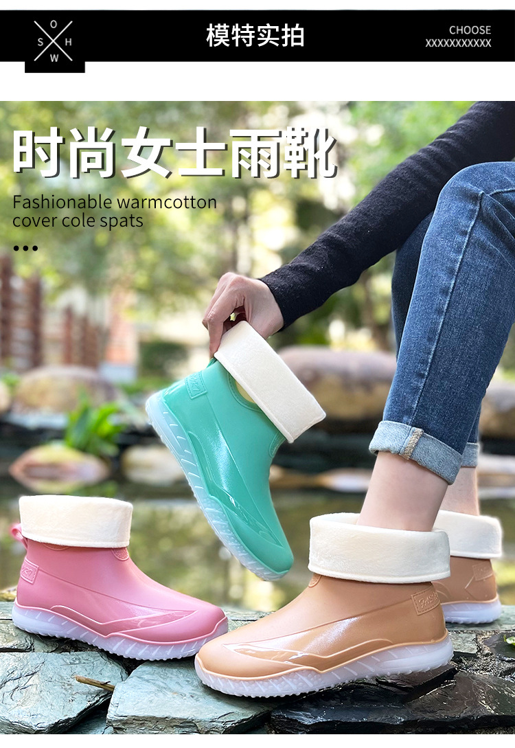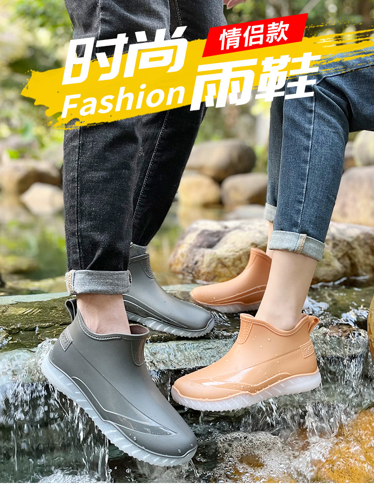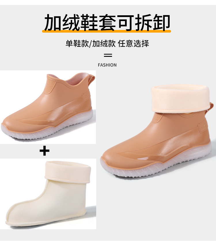 짧은 튜브 남자의 레인 슈즈 여성의 방수 미끄럼 방지 패션 겉옷 기모 레인 부츠 학생 고무 신발 도매