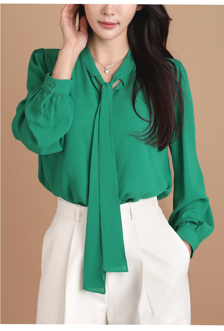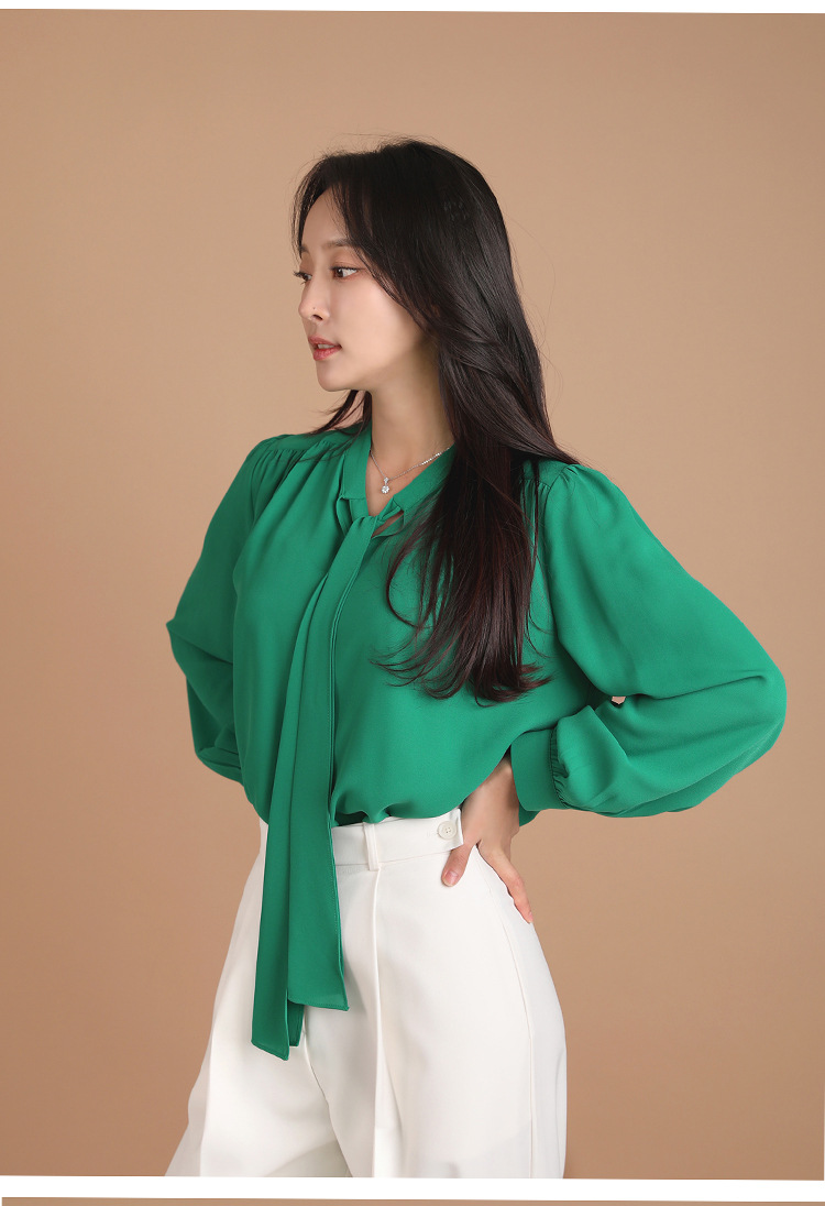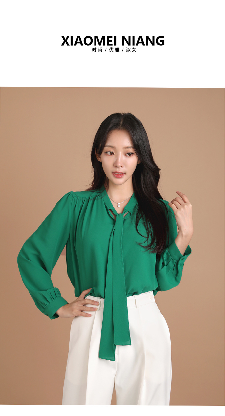 气质衬衫女2025秋季新款设计感蝴蝶结系带上衣洋气百搭飘带雪纺衫스토어 가기