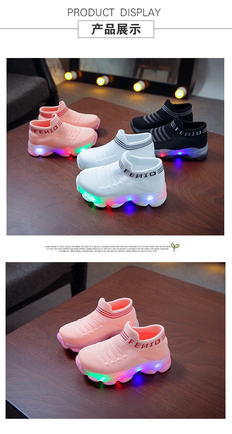 교차 국경 폭발 남성과 여성의 어린이 신발 Led 조명 신발 조명 신발 비행 직조 운동화 광택 신발 빛나는 낚시 실크 양말 신발스토어 가기