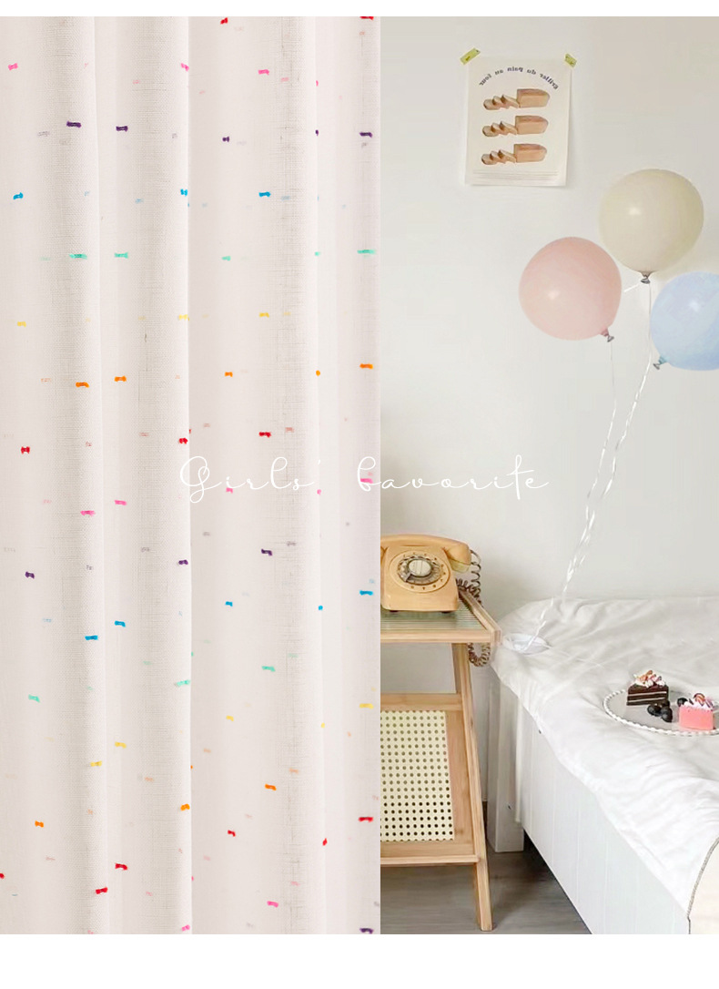 [디자이너] 레인보우 슈가 거즈 커튼 소녀의 하트 스크린 커튼 린넨 거즈 커튼 인 스타일 귀여운 스크린 커튼스토어 가기