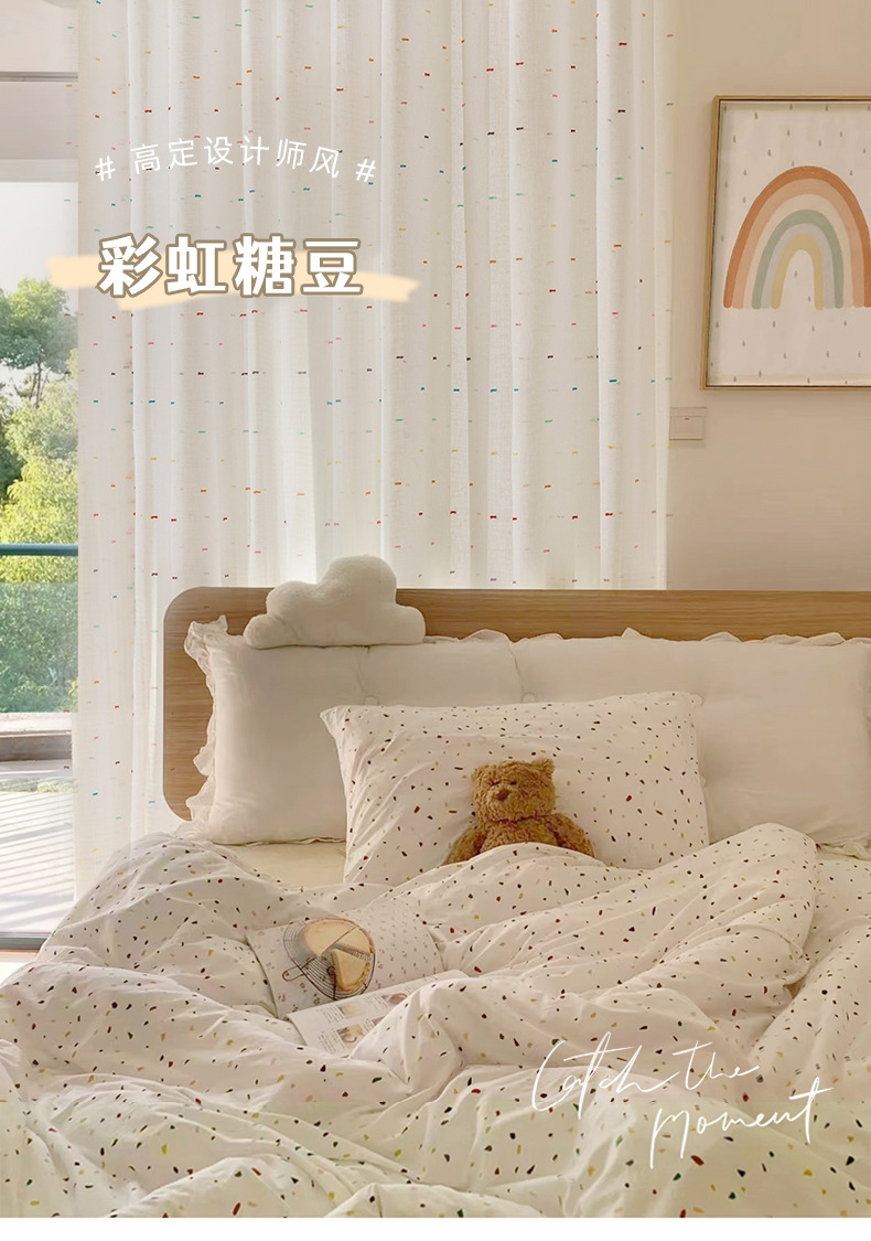 [디자이너] 레인보우 슈가 거즈 커튼 소녀의 하트 스크린 커튼 린넨 거즈 커튼 인 스타일 귀여운 스크린 커튼