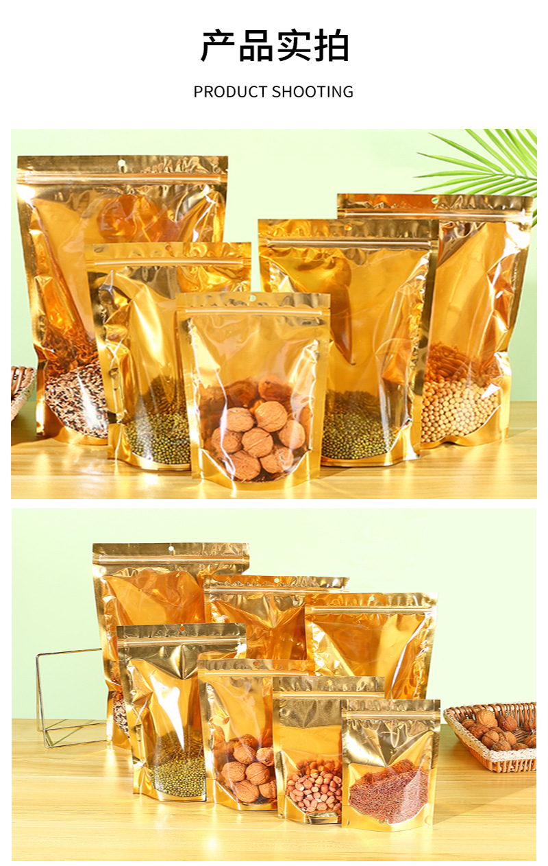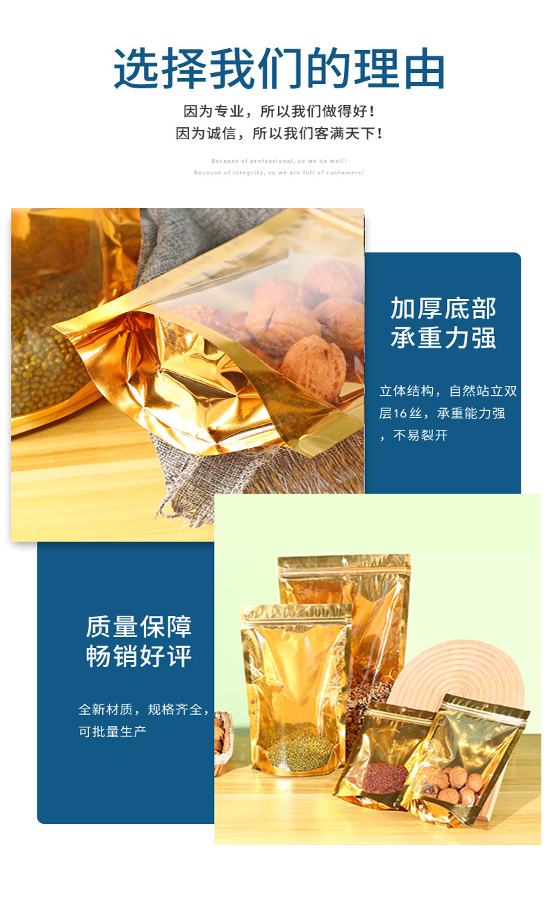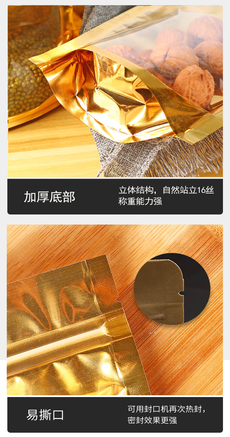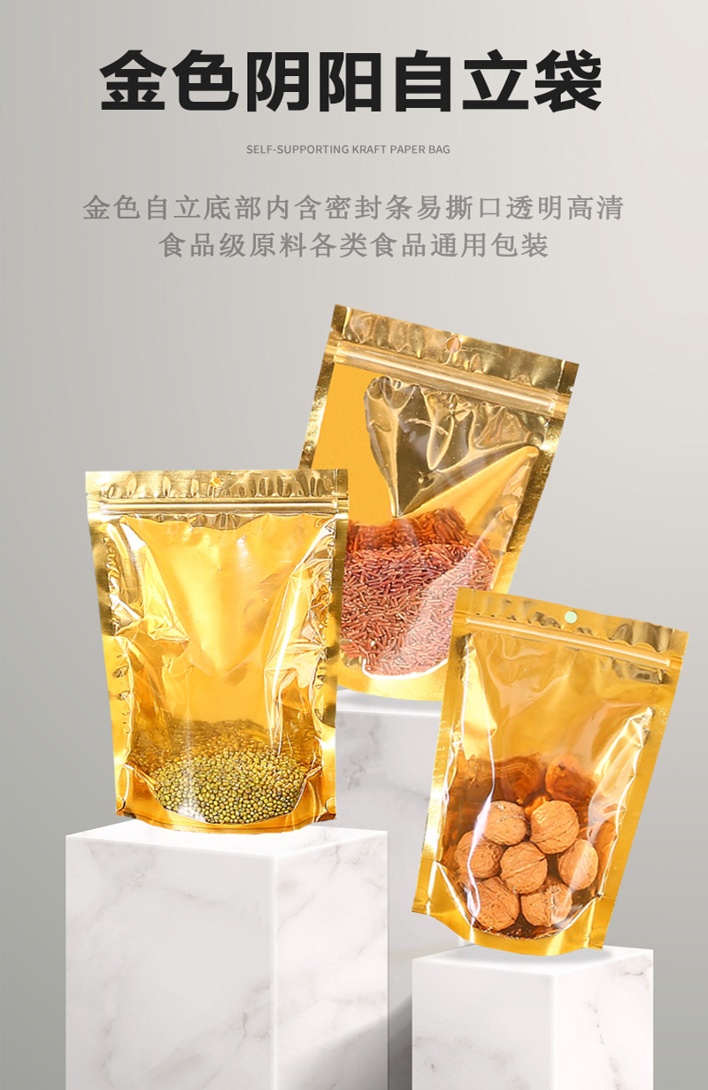 本产品为现货铝箔金色阴阳自立自封袋加厚半透明镀铝拉链袋密封袋茶叶袋