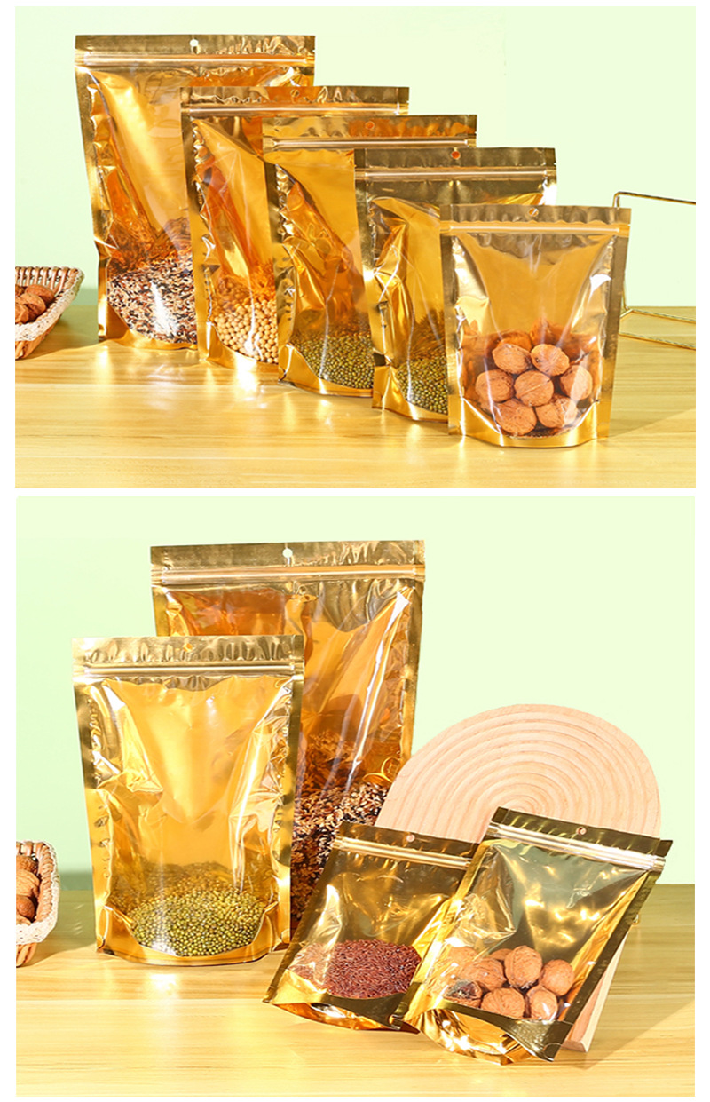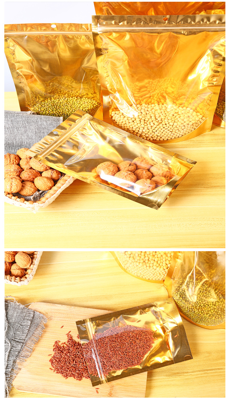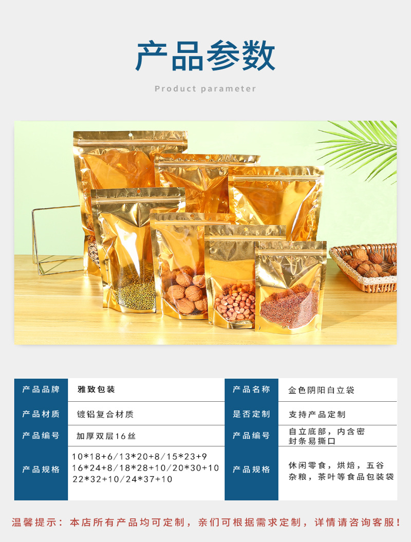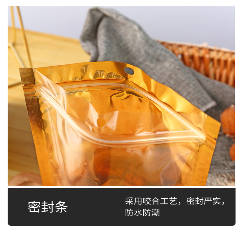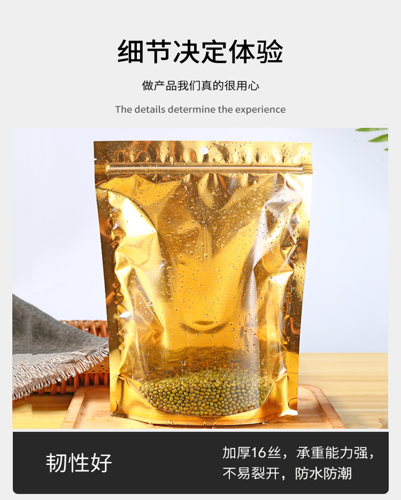 本产品为现货铝箔金色阴阳自立自封袋加厚半透明镀铝拉链袋密封袋茶叶袋