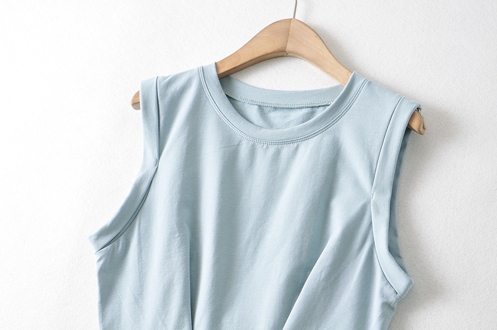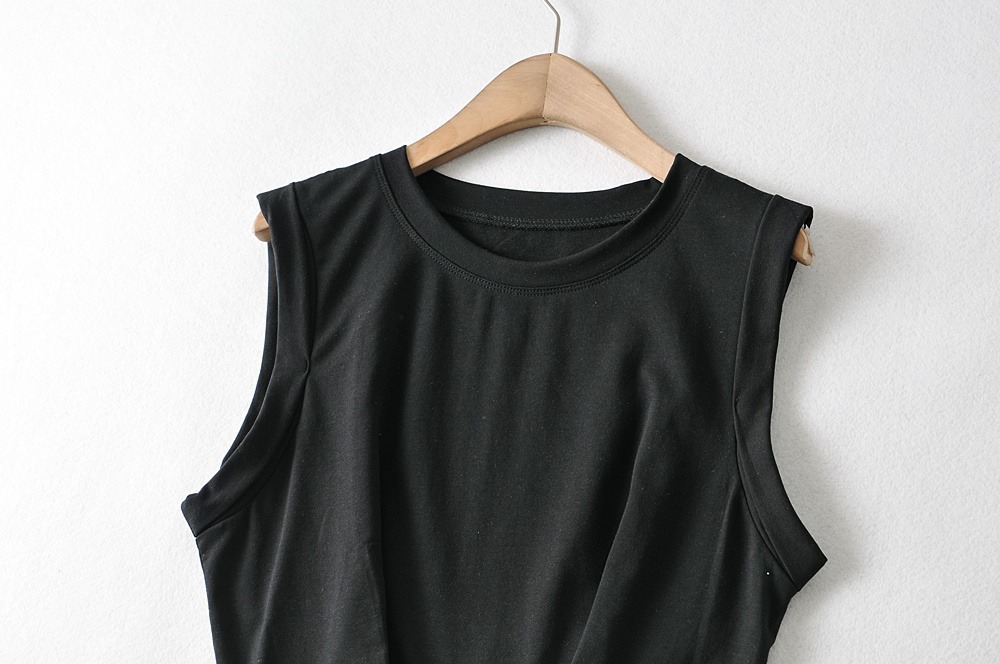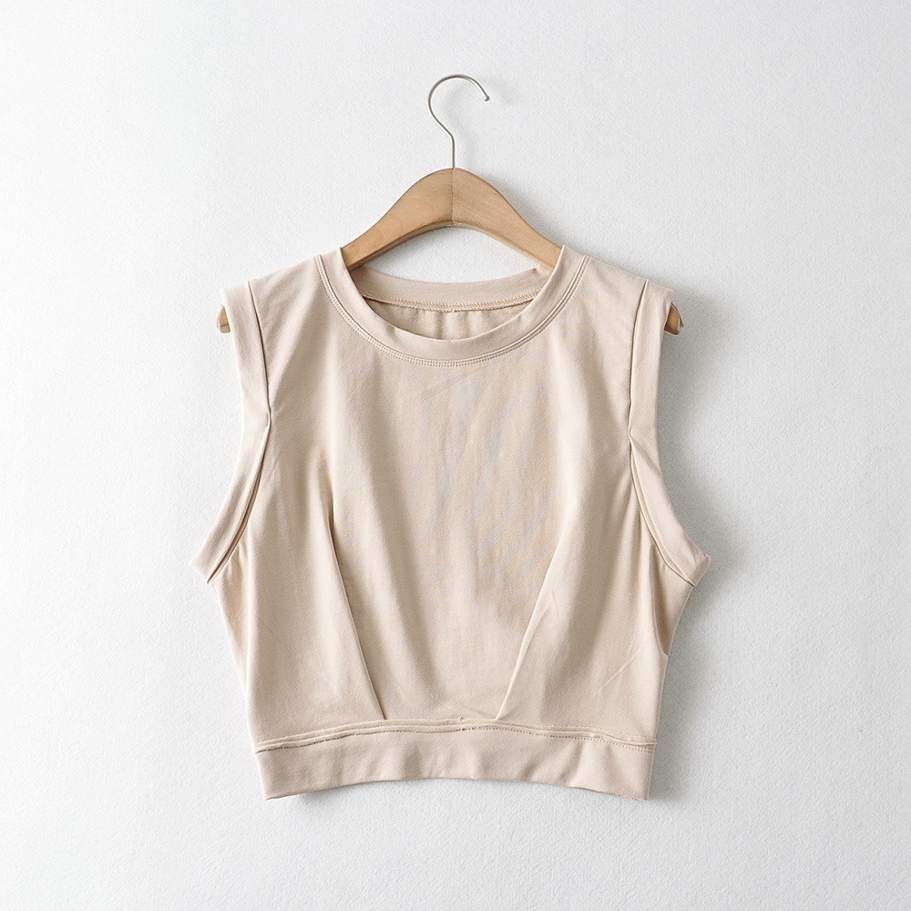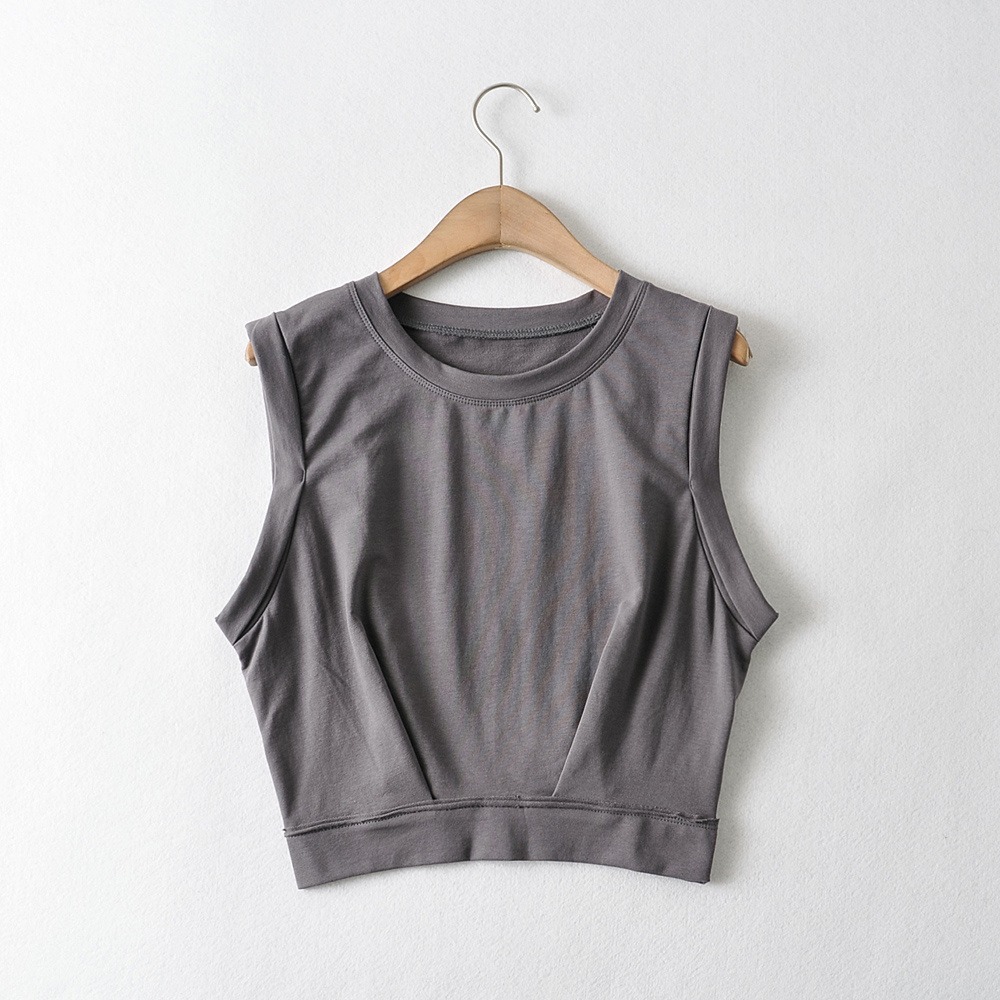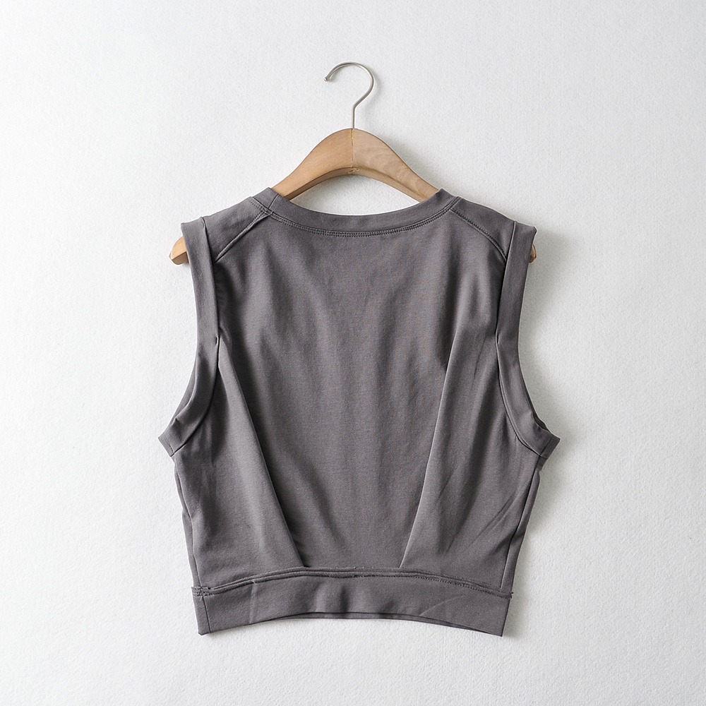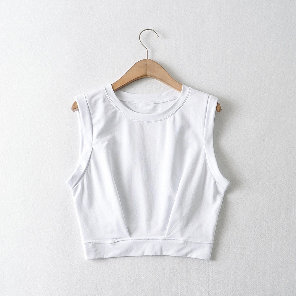 섹시한 스파이스 걸 새로운 2023 여름 유럽과 미국 여성의 느슨한 스포츠 블라우스 I 자형 라운드 넥 슬림핏 작은 조끼스토어 가기