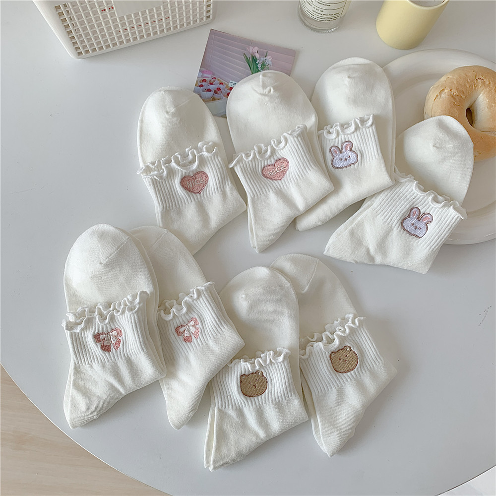 양말 여성용 여름 얇은 나무 귀 흰색 양말 여성용 튜브 양말 트렌디 한 순면 jk 소녀 짧은 튜브 양말스토어 가기