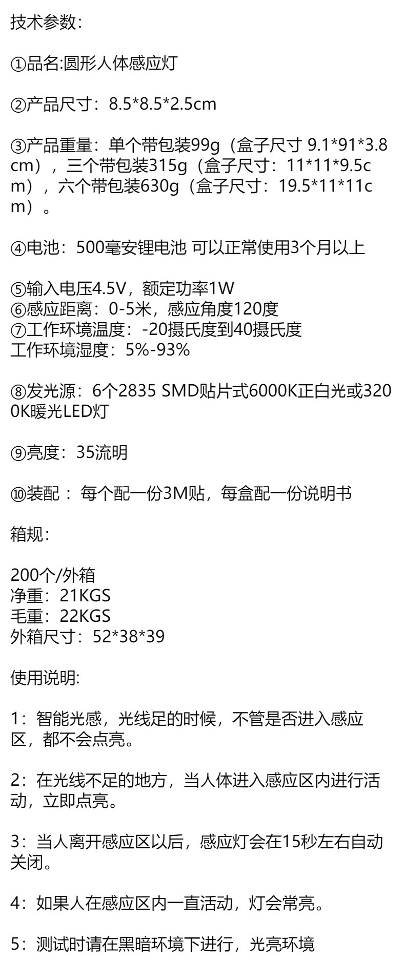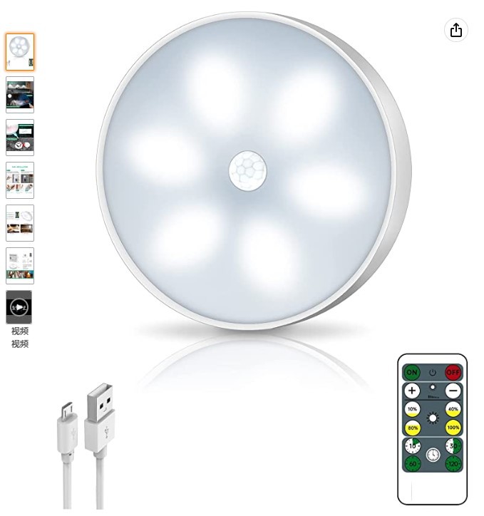 • 3PC 충전 모델 + USB 케이블 + 인체 유도 + 조명 제어 + 스위치 포함 + 자기 흡수 화이트 라이트