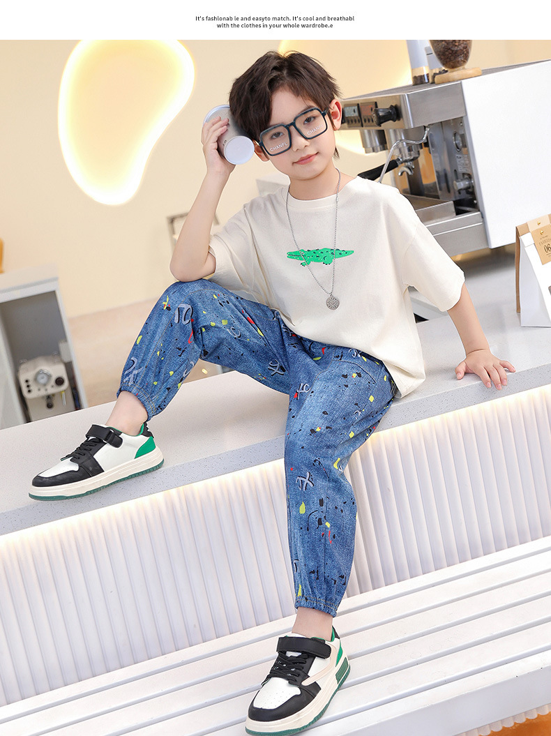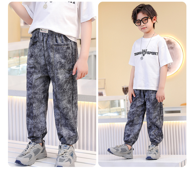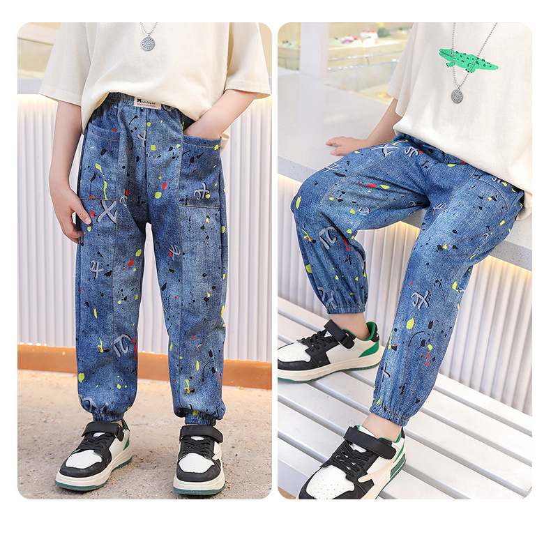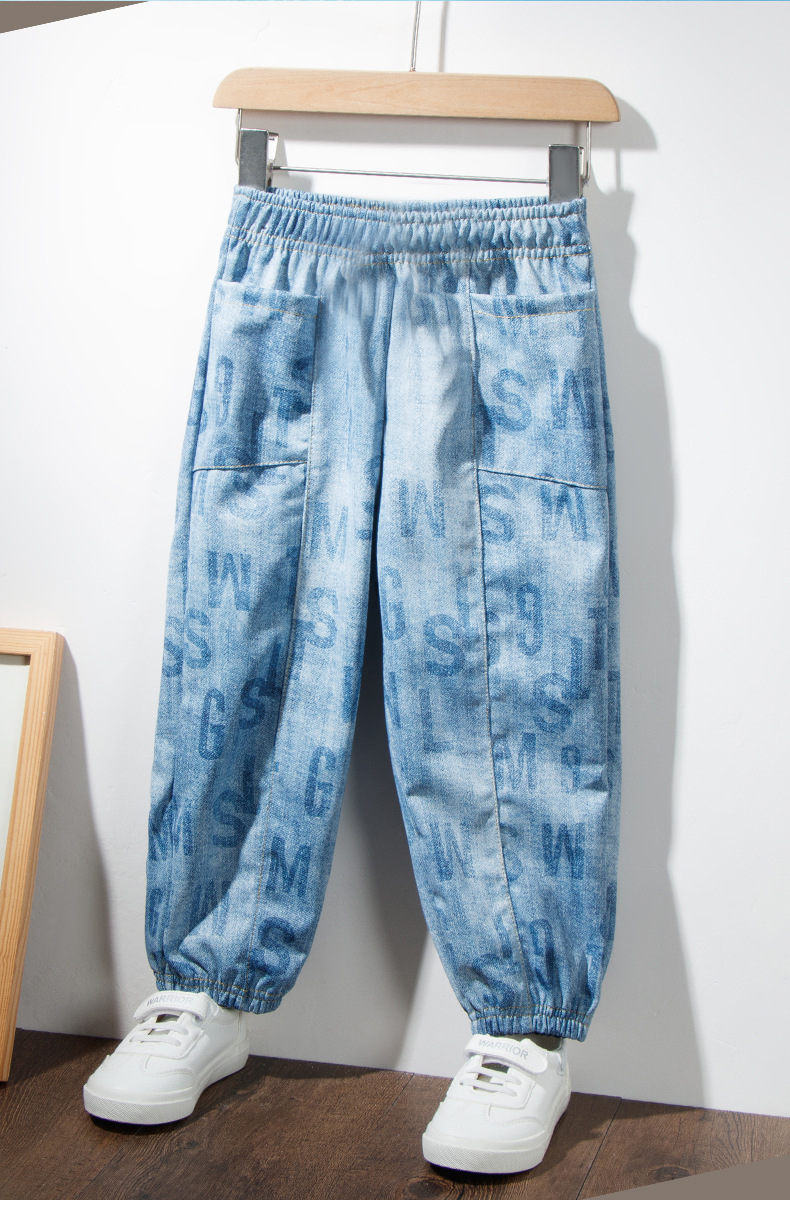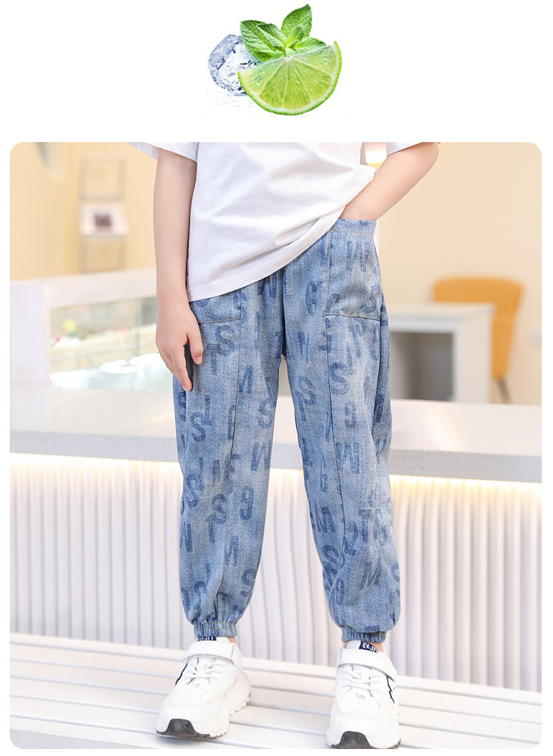 어린이 청바지 여름 봄과 여름 소년과 소녀 새로운 얇은 도매 어린이 바지 큰 어린이 자른 바지 바지 캐주얼 바지스토어 가기