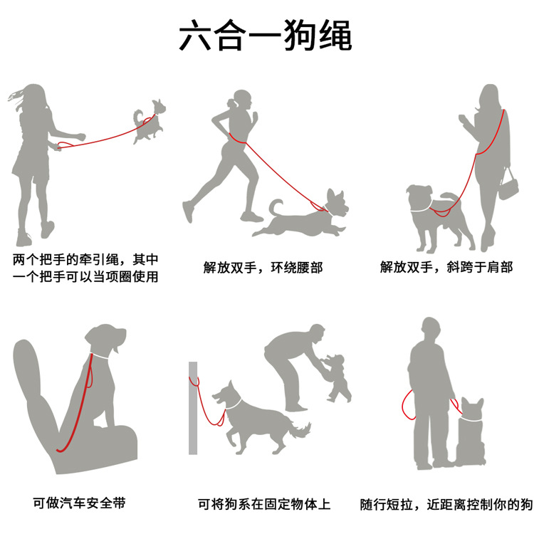 애완동물 용품 추천, 러닝카 견인 로프, 이탈 방지용 6-in-1 개 가죽끈, 나일론 개 안전벨트