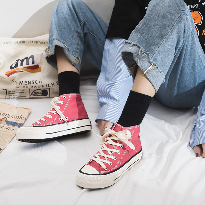 여성용 두꺼운 밑창 하이탑 캔버스 슈즈, 플랫 플랫폼 슈즈, 다용도 천 슈즈, 통기성 여성 슈즈, 학생 한국식 여성 슈즈 R66