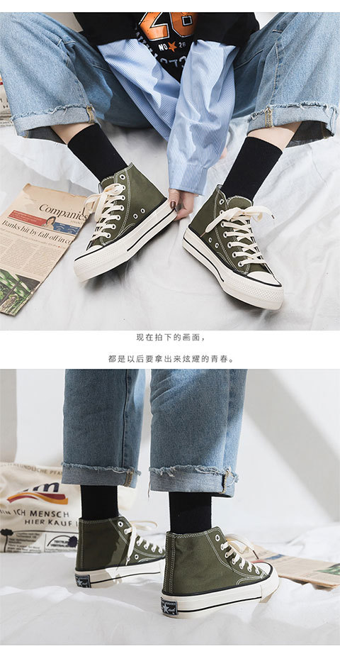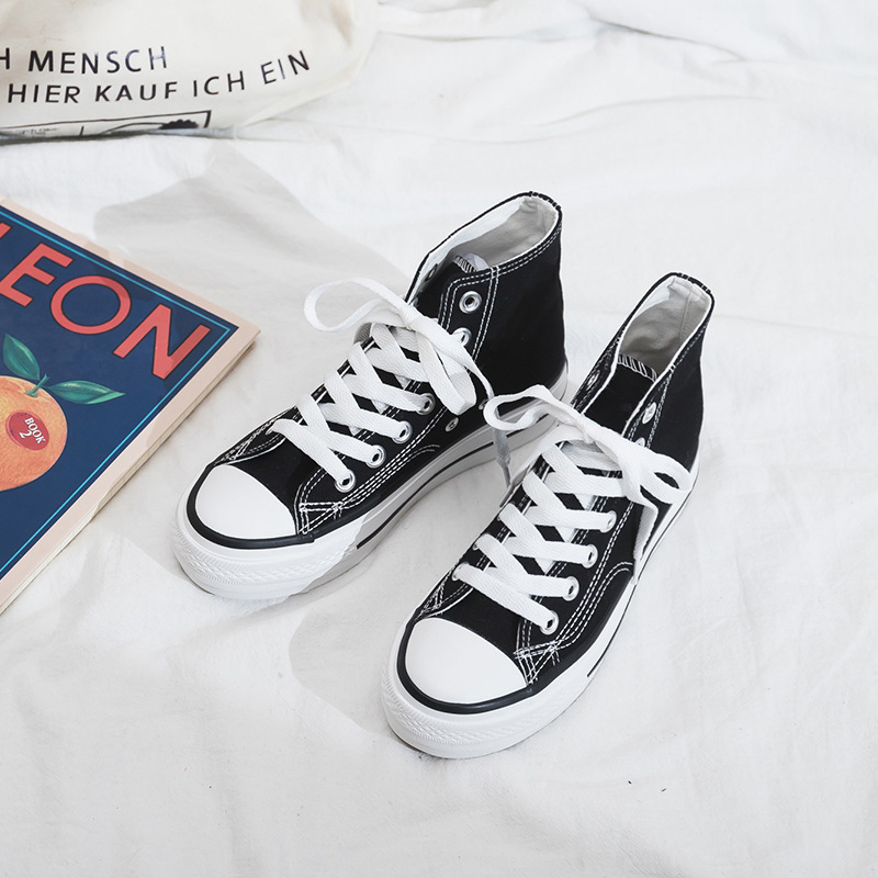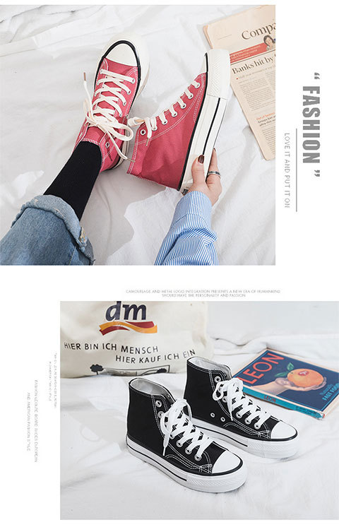 여성용 두꺼운 밑창 하이탑 캔버스 슈즈, 플랫 플랫폼 슈즈, 다용도 천 슈즈, 통기성 여성 슈즈, 학생 한국식 여성 슈즈 R66스토어 가기