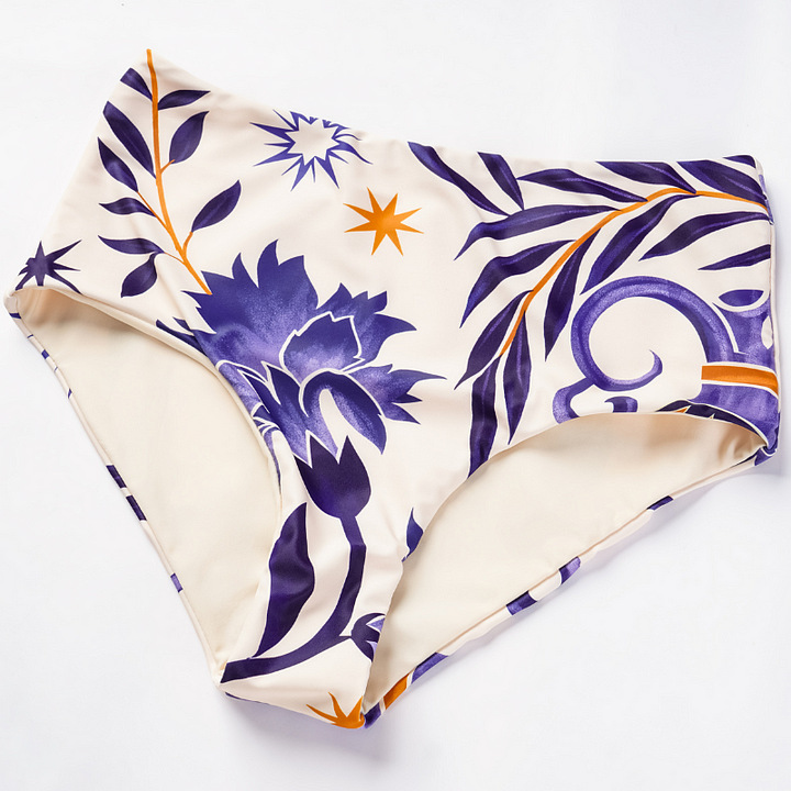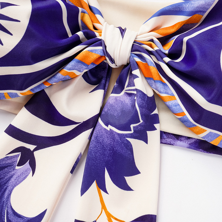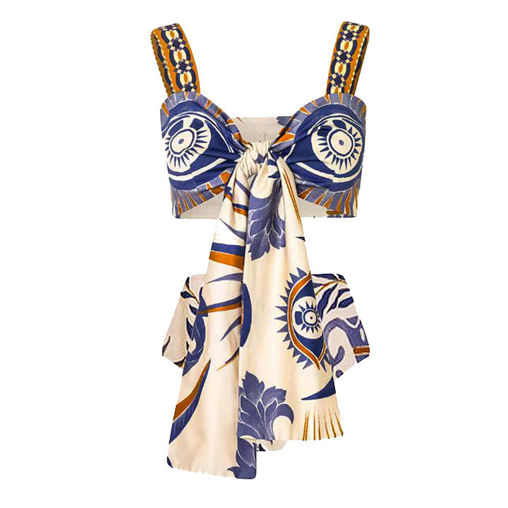 2024 유럽과 미국의 새로운 비키니 숄더 러플 민족 스타일 인쇄 분할 수영복스토어 가기
