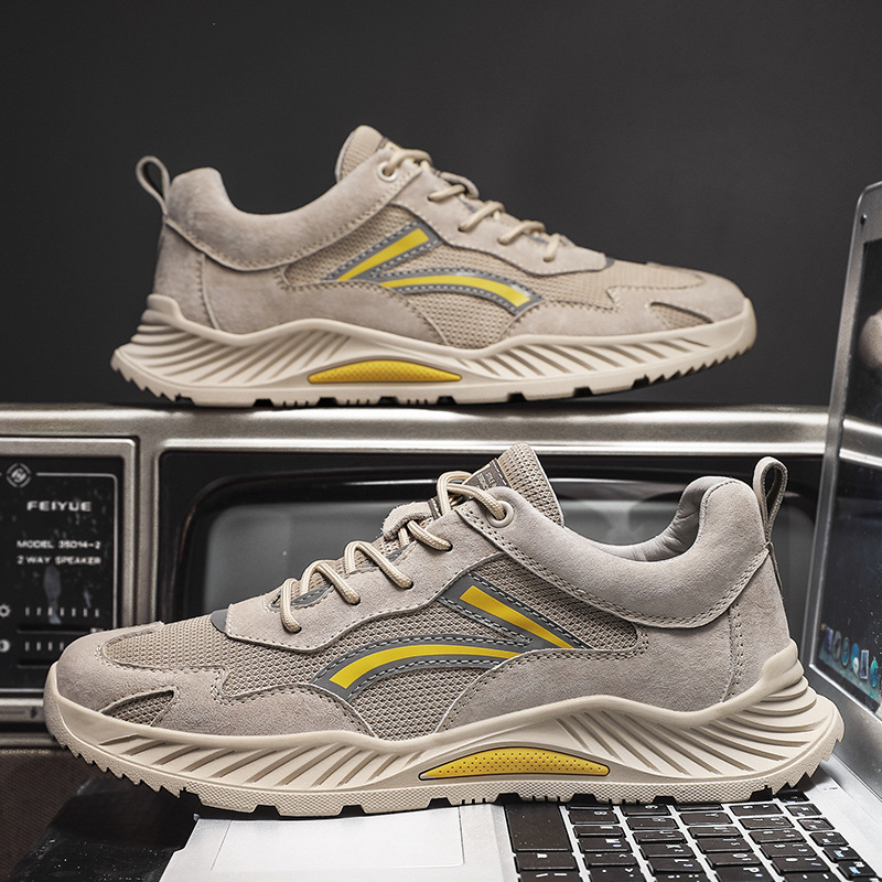 [1 층 돼지 가죽] 2023 여름 통기성 남성용 운동화 패션 캐주얼 신발 남성 메쉬 플러스 사이즈 남성 신발