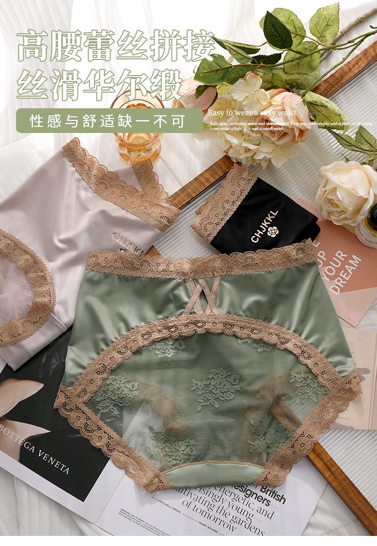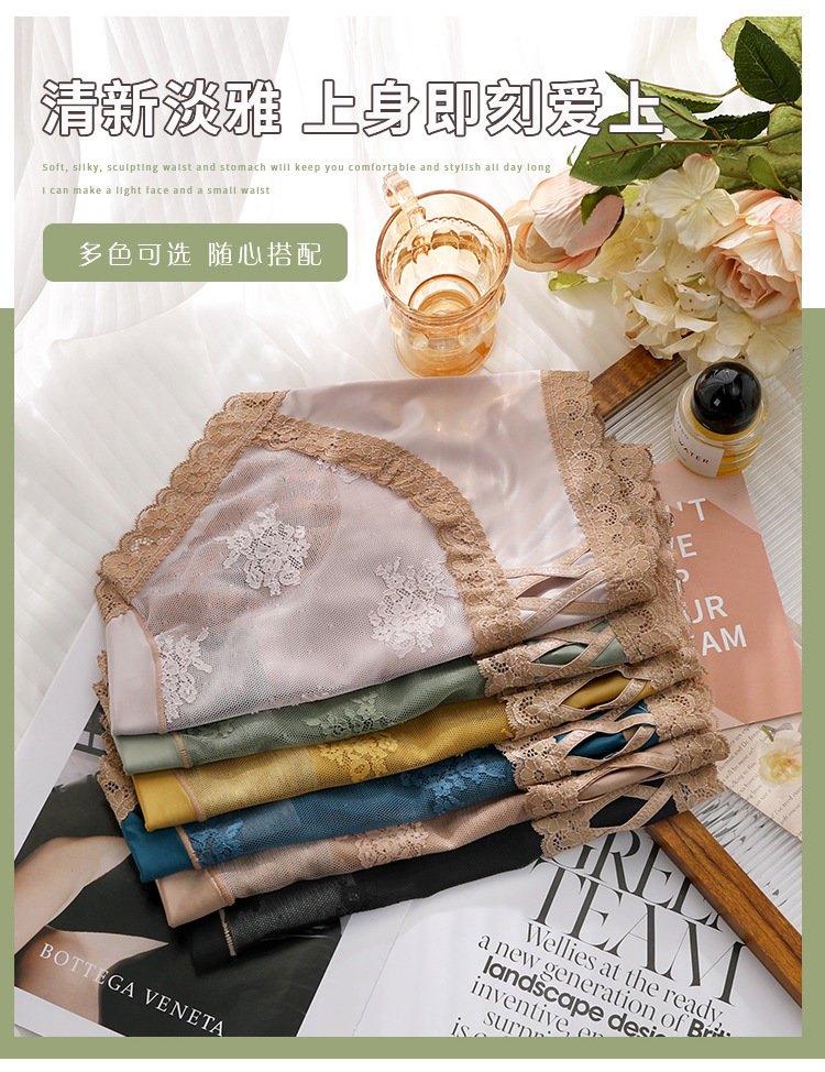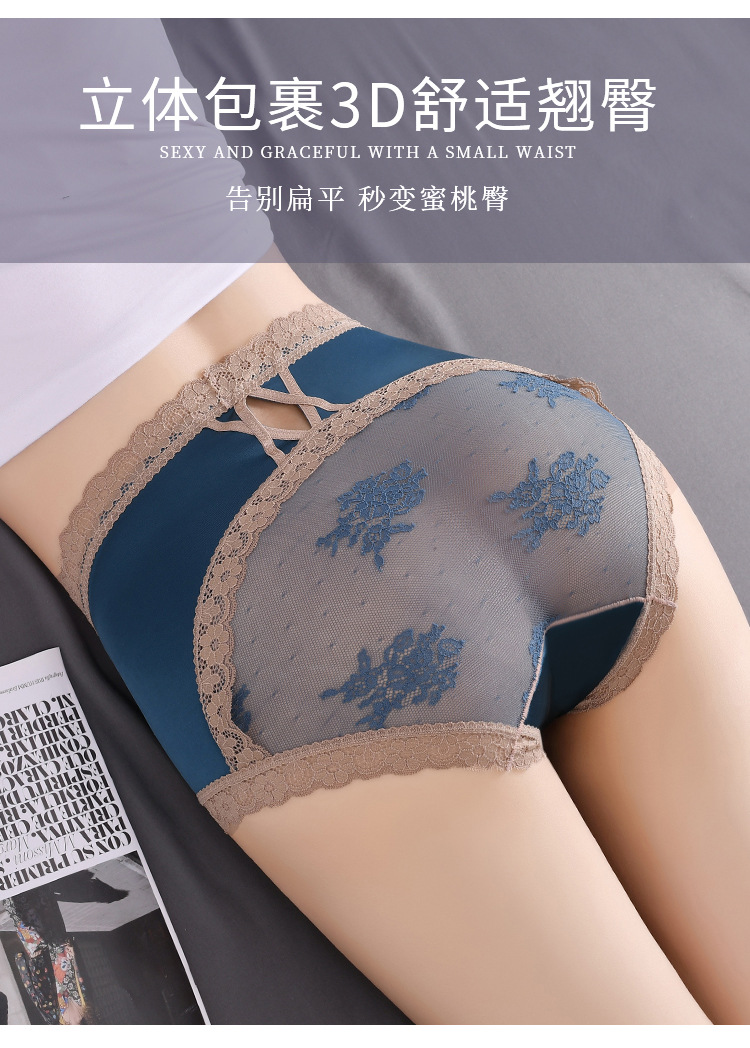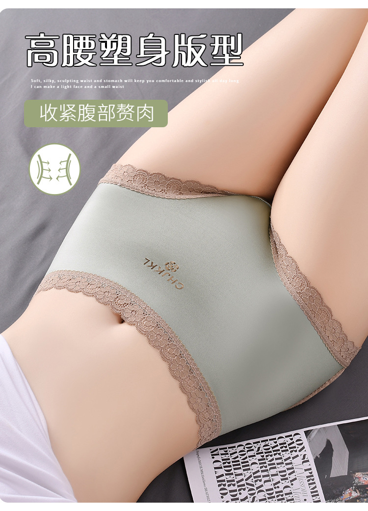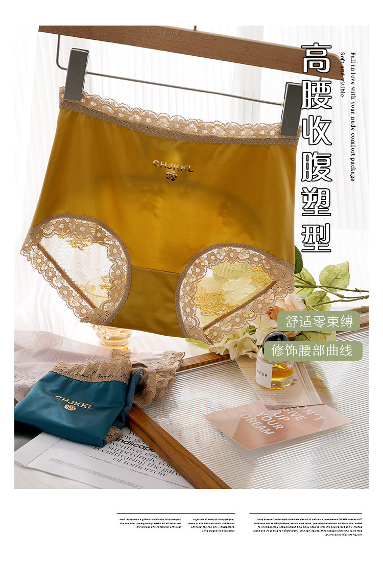 미드 하이 웨이스트 레이스 속옷 여성의 섹시한 아이스 실크 배꼽 리프팅 엉덩이 통기성 원활한 얇은 반바지 여름