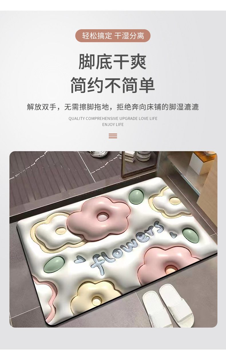 폭발 3D 입체 확장 꽃 부드러운 규조 진흙 매트 욕실 물 흡수 미끄럼 방지 발 매트 도어 매트 재고스토어 가기