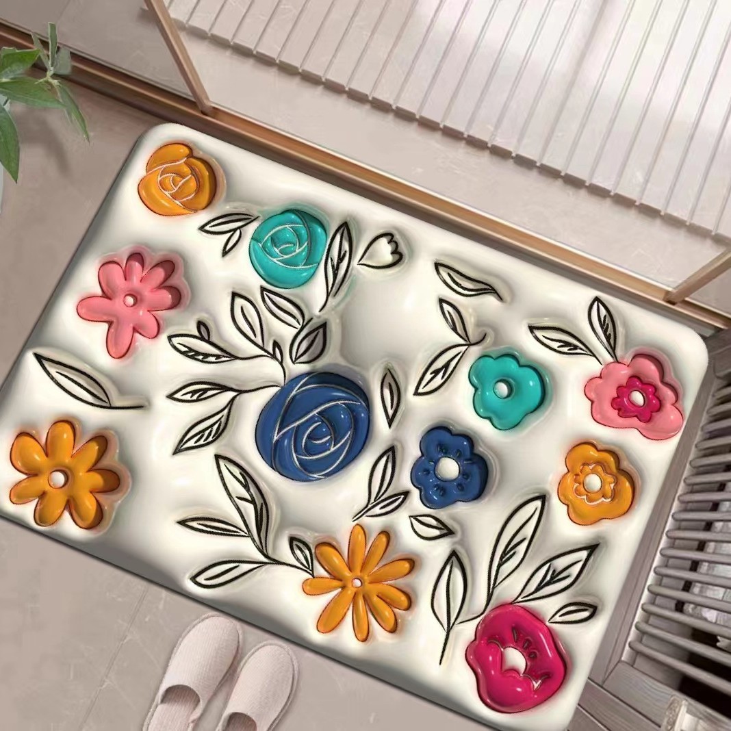폭발 3D 입체 확장 꽃 부드러운 규조 진흙 매트 욕실 물 흡수 미끄럼 방지 발 매트 도어 매트 재고