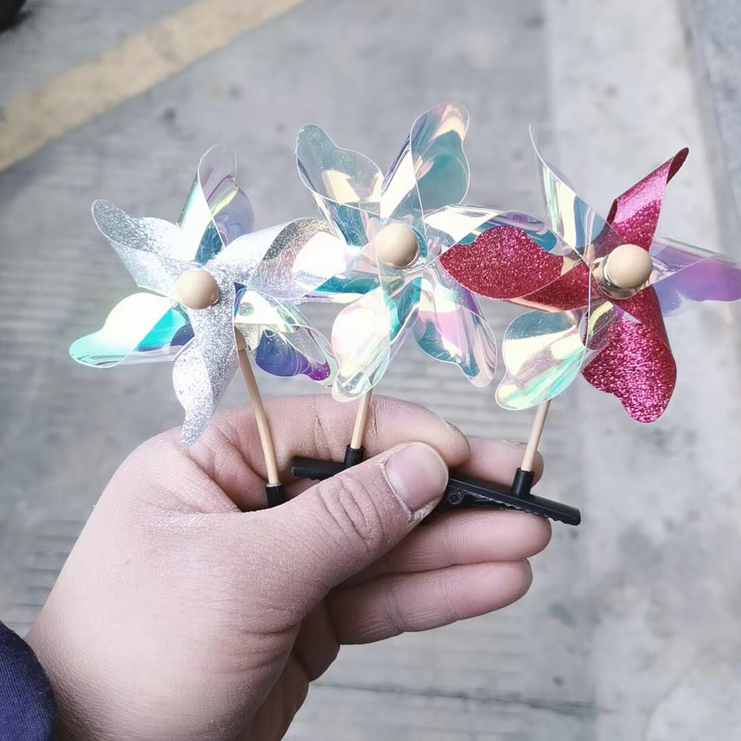 봄 외출 선물은 움직일 것입니다 밝은 핑크 풍차 머리핀 매직 컬러 판매 귀여운 창조적 인 앞머리 클립 사이드 클립 소녀 머리 장식
