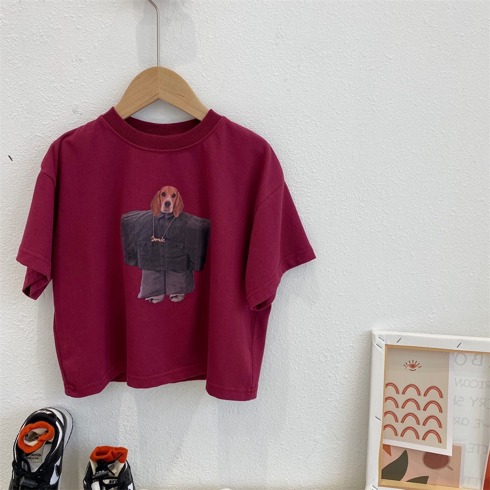 2023 봄과 여름 어린이 프린트 반팔 티셔츠 소년과 소녀를위한 유럽과 미국 스타일 루즈한 티셔츠