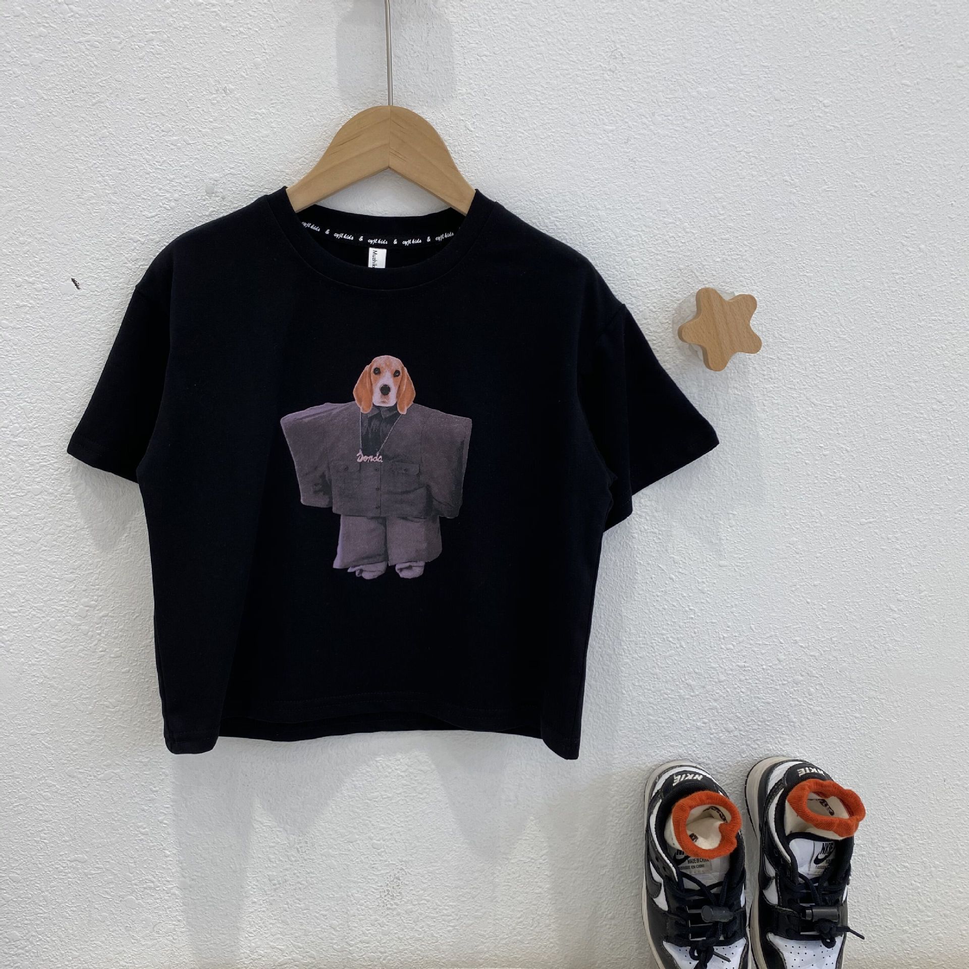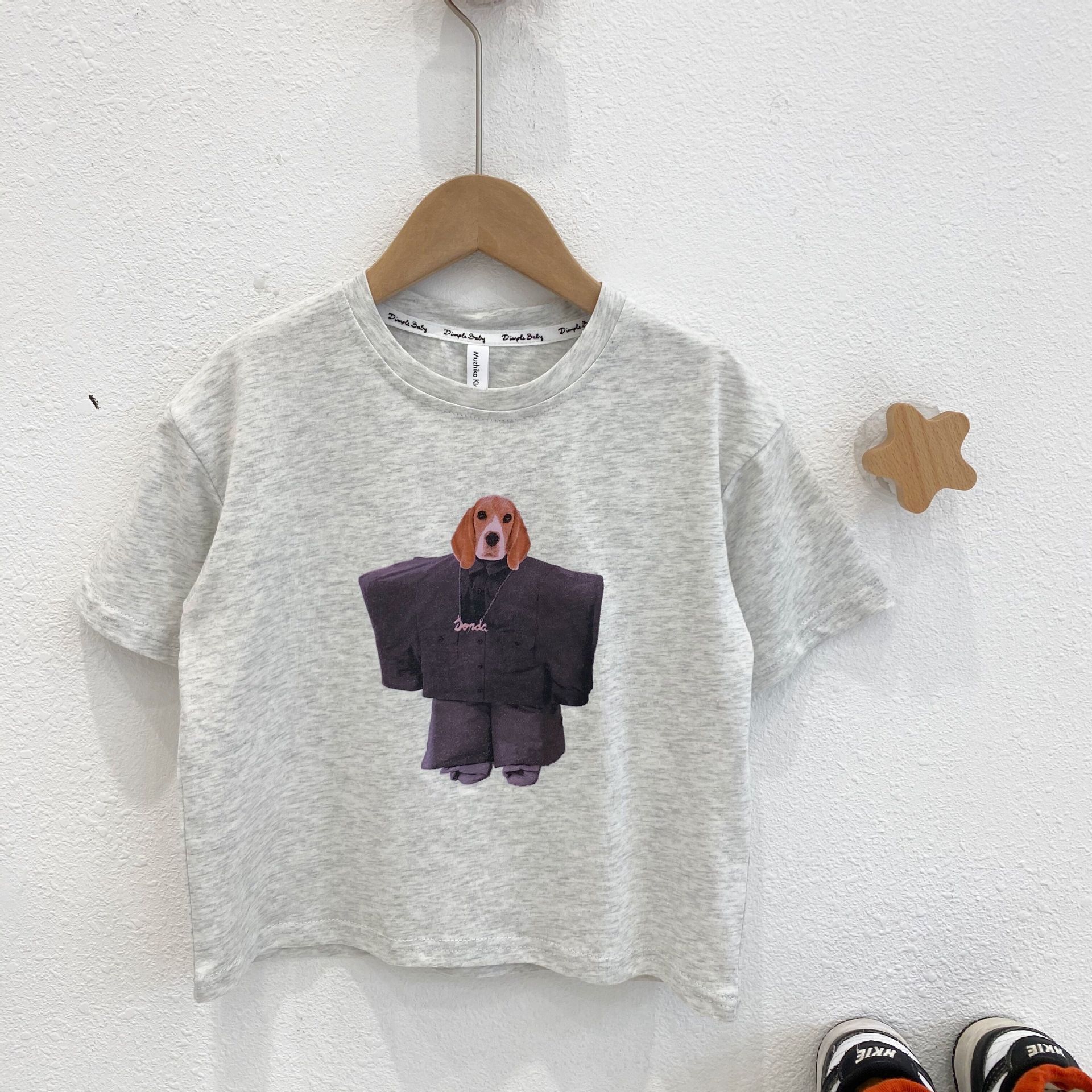 2023 봄과 여름 어린이 프린트 반팔 티셔츠 소년과 소녀를위한 유럽과 미국 스타일 루즈한 티셔츠스토어 가기