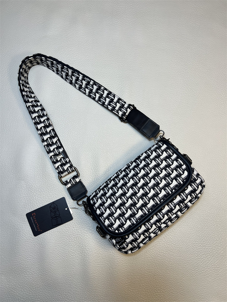 2023时尚千鸟格女士斜挎小包 休闲格纹彩带男女单肩包 日韩系背包