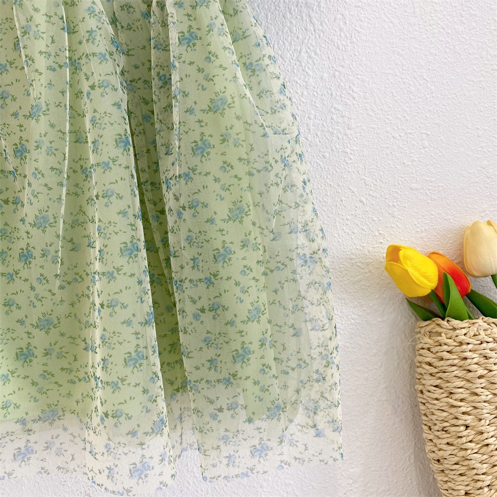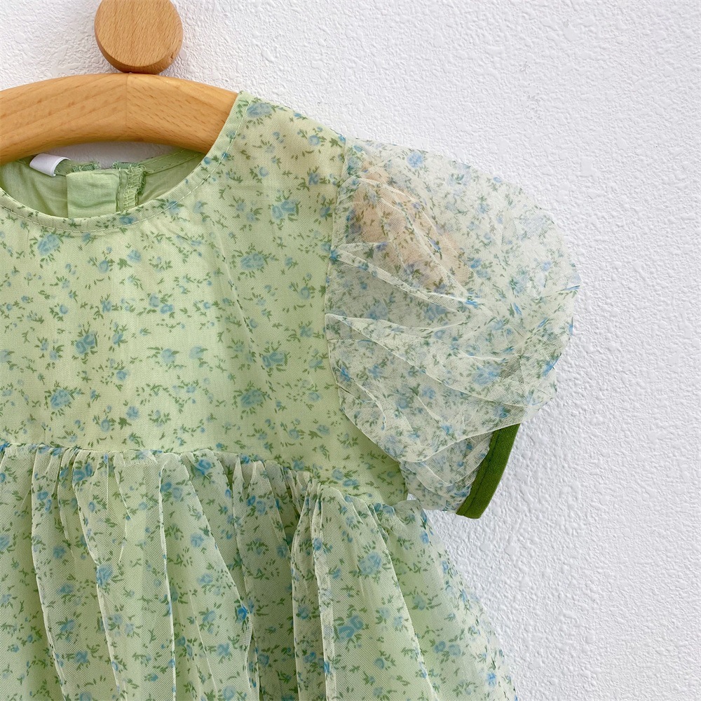 여름 여자아이 원피스 아동 반팔 여아 한국 스타일 꽃무늬 더블 레이어 거즈 스커트