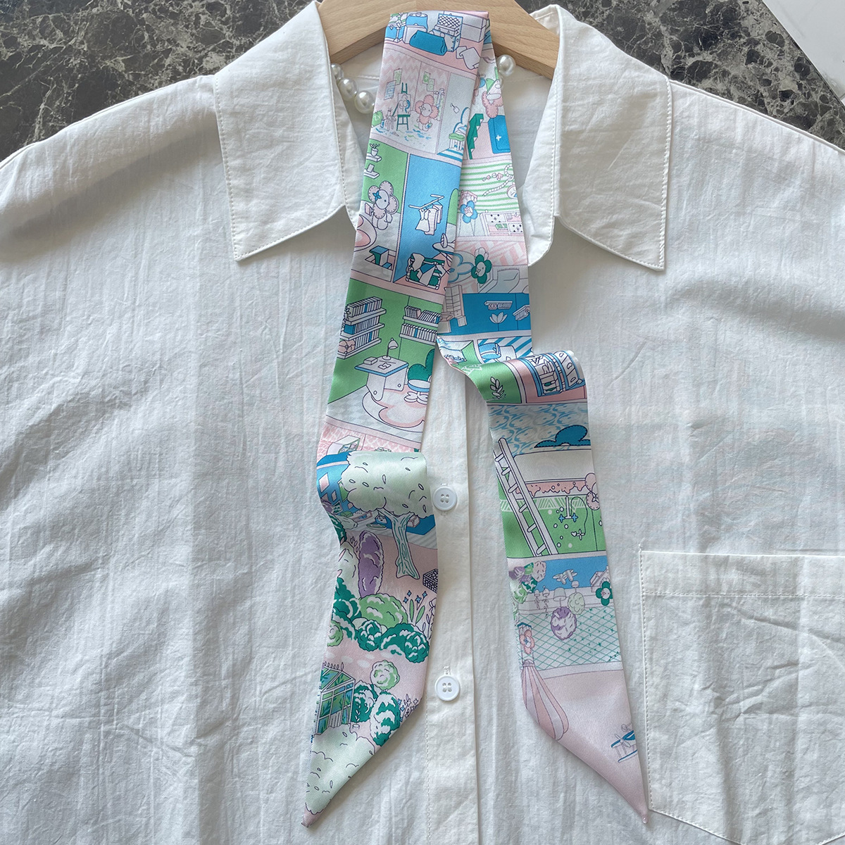여름 만화 실크 스카프 헤어 벨트 귀여운 기질 실크 스카프 여성 날씬한 리본 넥타이 머리 스카프 헤어 액세서리 도매