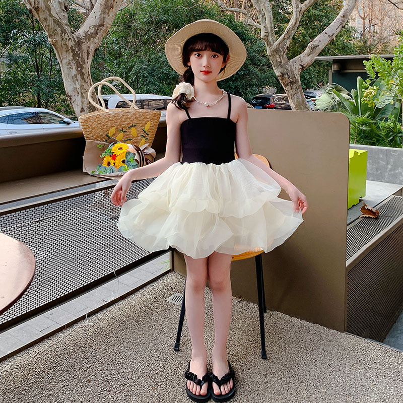 여아 여름 드레스, 퍼프 공주 드레스, 여름 서스펜더 거즈 스커트, 패셔너블하고 스타일리시한 드레스, 퍼프 스커트스토어 가기