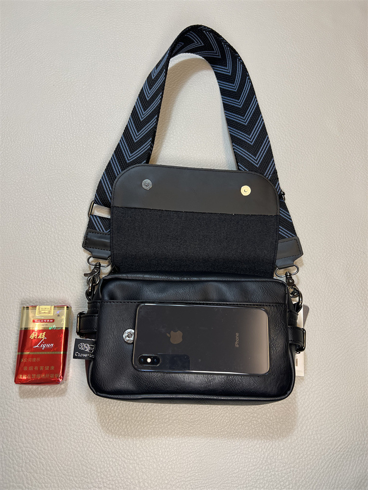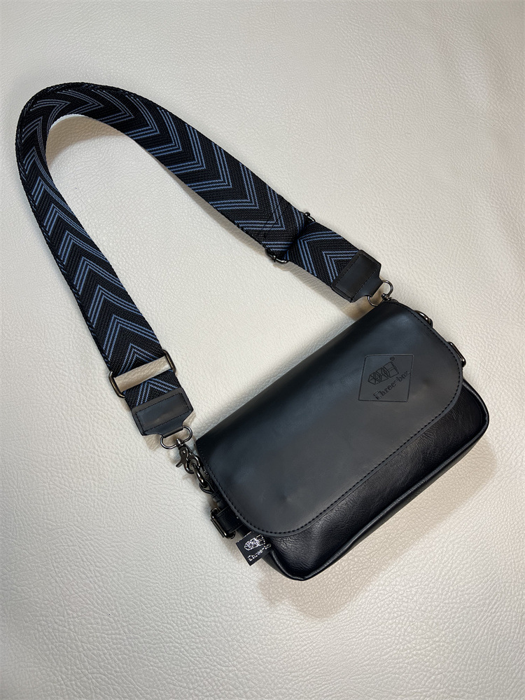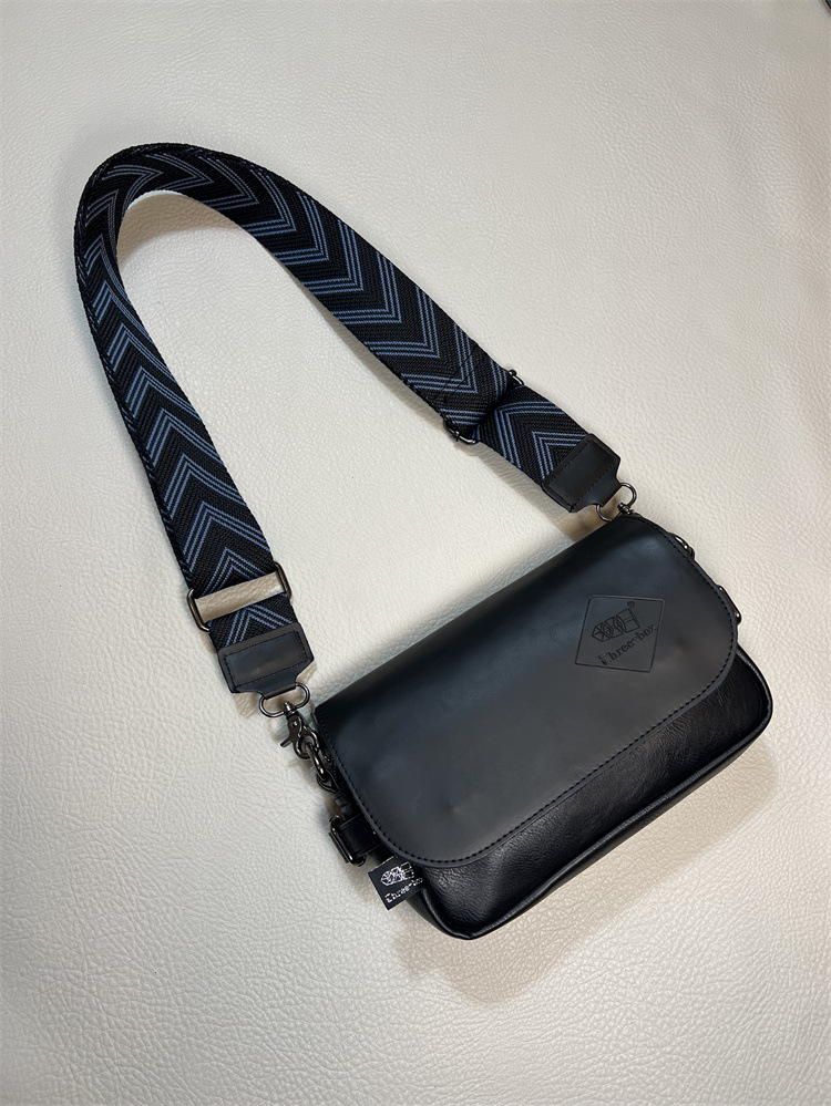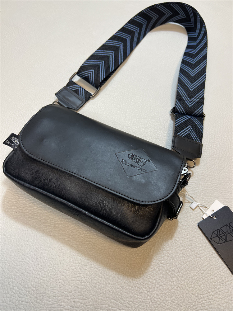 2023年时尚三盒子斜挎男包 潮流日系男女彩带单肩包 休闲条纹背包