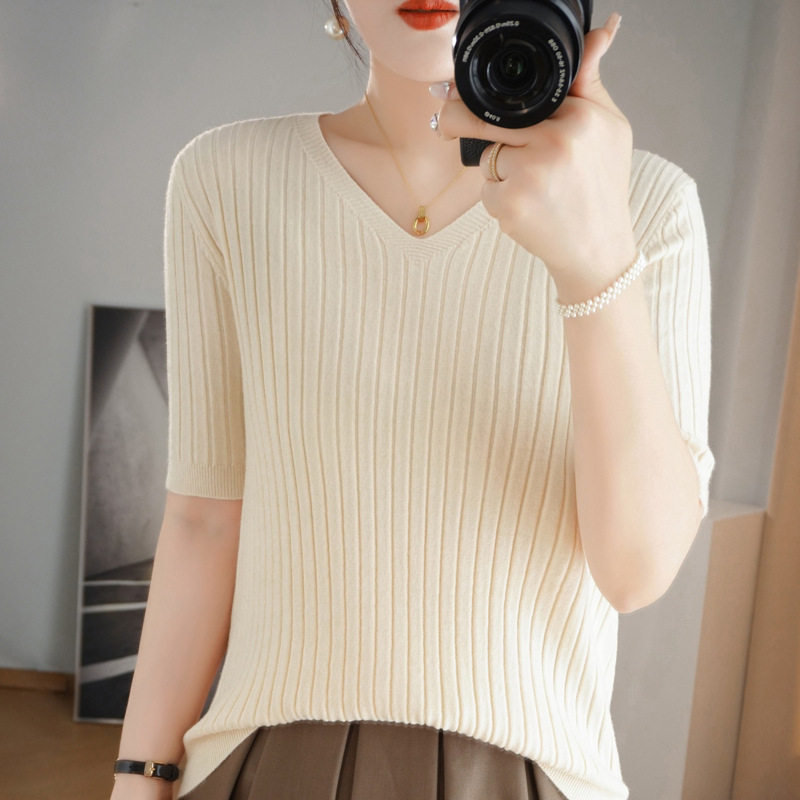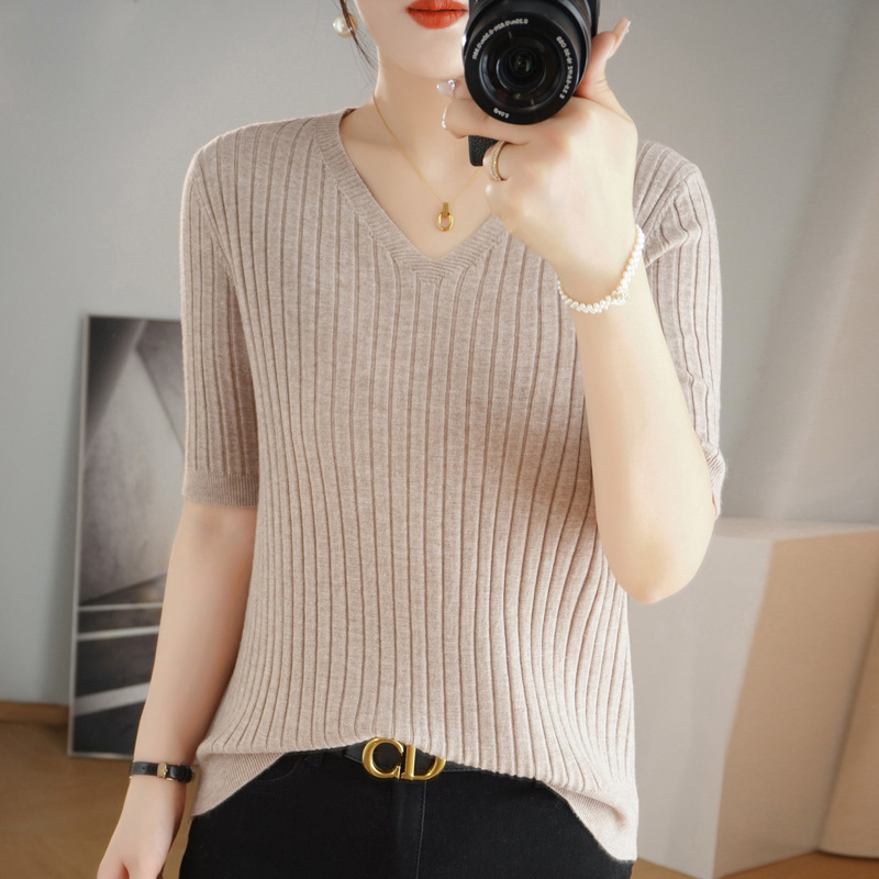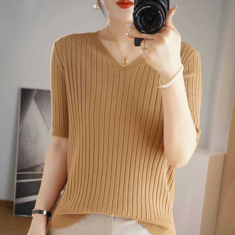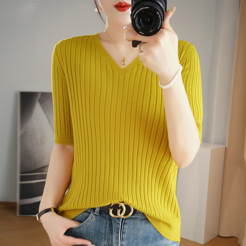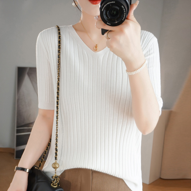 2025년 신상 다용도 반팔 티셔츠, 슬림핏 스트라이프 여성용 스웨터, 슬리밍 스타일, 이너웨어 및 아우터웨어스토어 가기