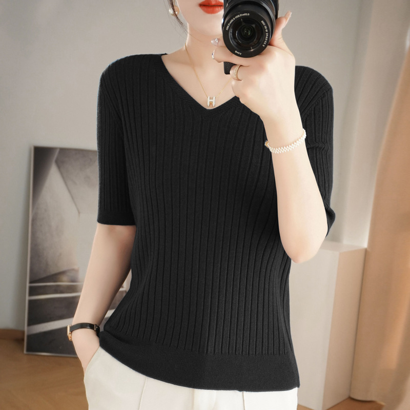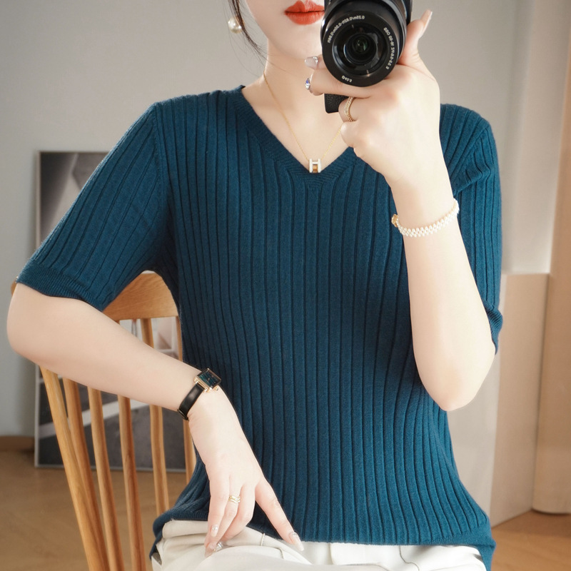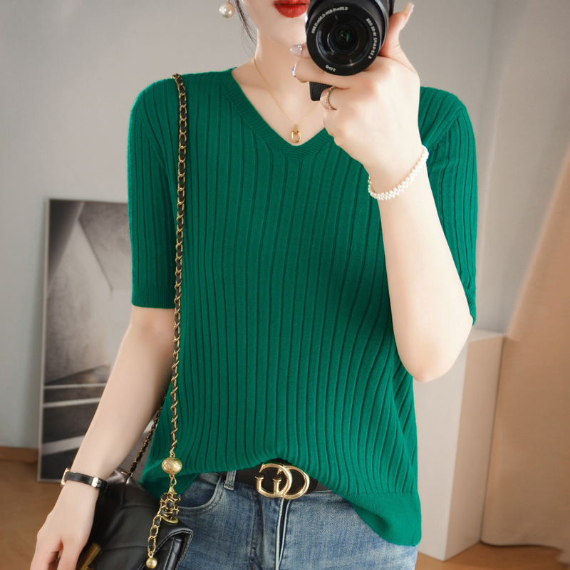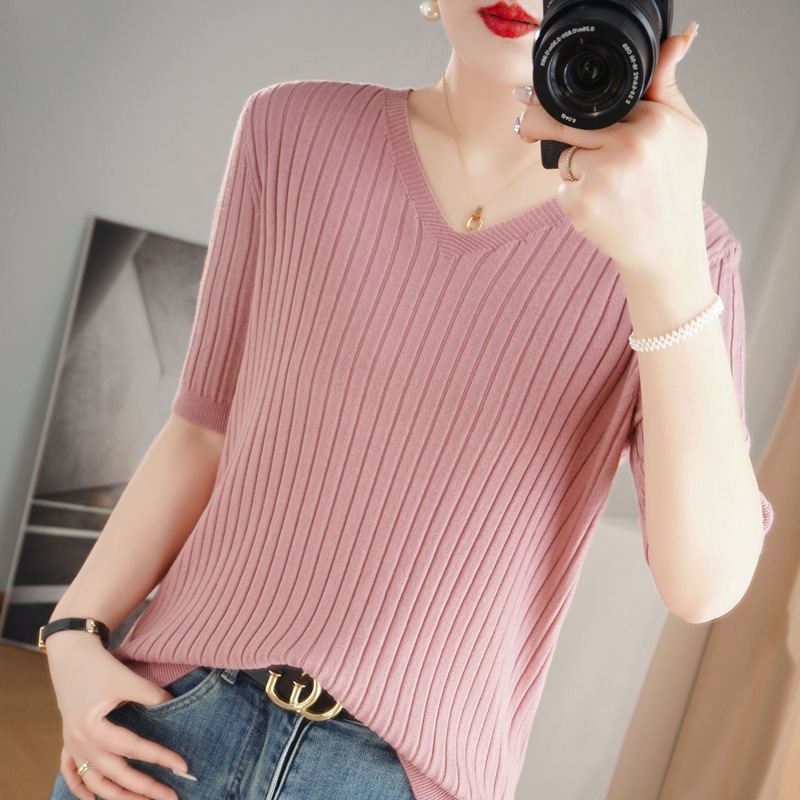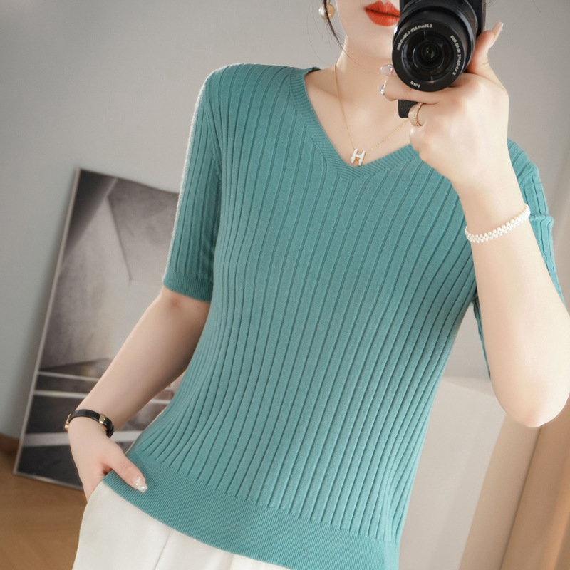 2025년 신상 다용도 반팔 티셔츠, 슬림핏 스트라이프 여성용 스웨터, 슬리밍 스타일, 이너웨어 및 아우터웨어스토어 가기
