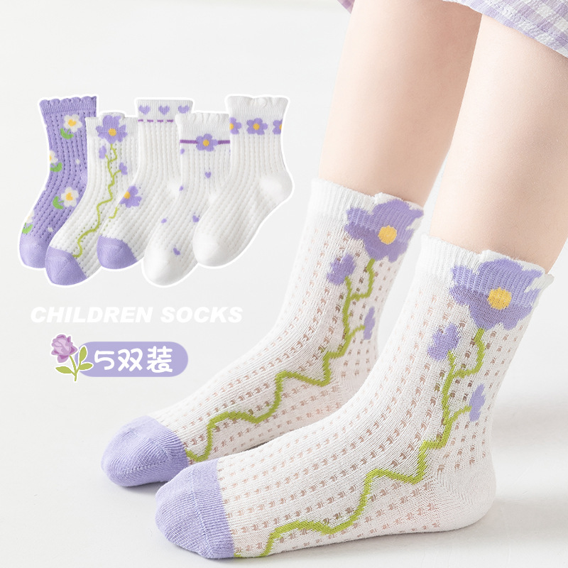 어린이 여름 양말 초박형 메쉬 목회 스타일 레이스 공주 중간 길이 양말 걸스 트렌디 코튼 뼈없는 긴 튜브스토어 가기