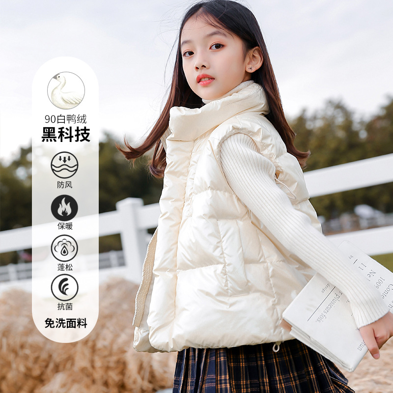 90% 백색 오리털 여아용 다운 재킷 2025 가을 겨울 신상 따뜻한 면 재킷 아동용 다운 조끼