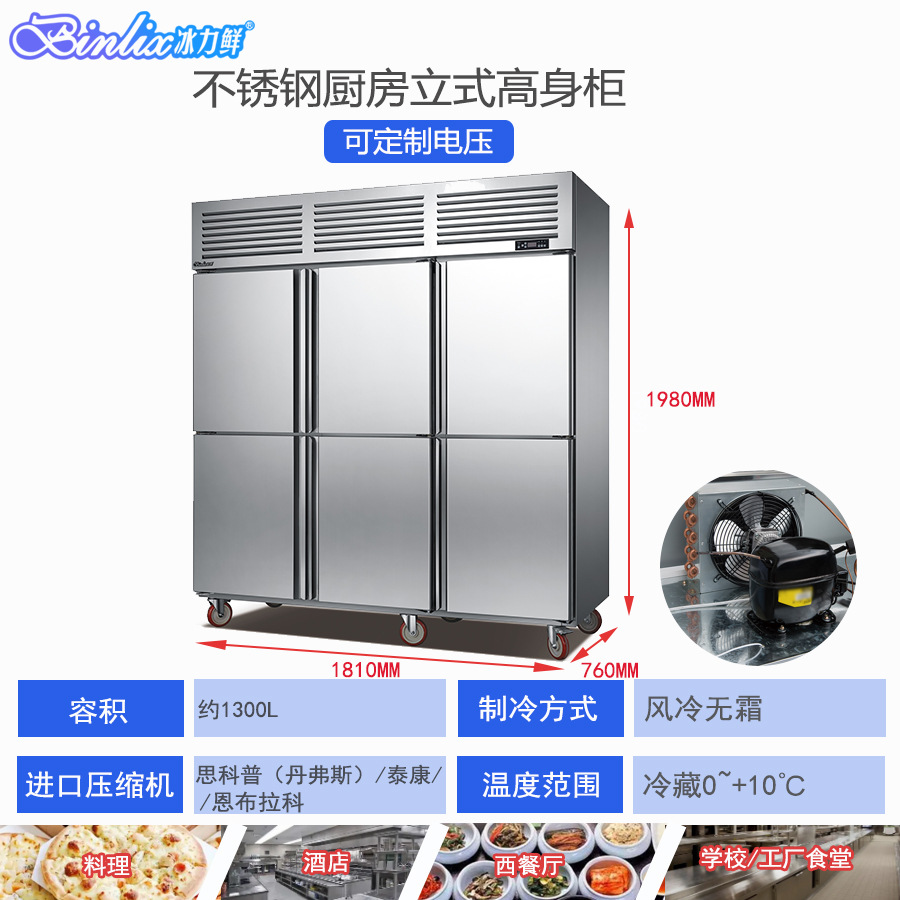 빙리셴 상업용 수직형 무결빙 냉장고 양문형 호텔 신선보관 냉동고 6도어 냉동고