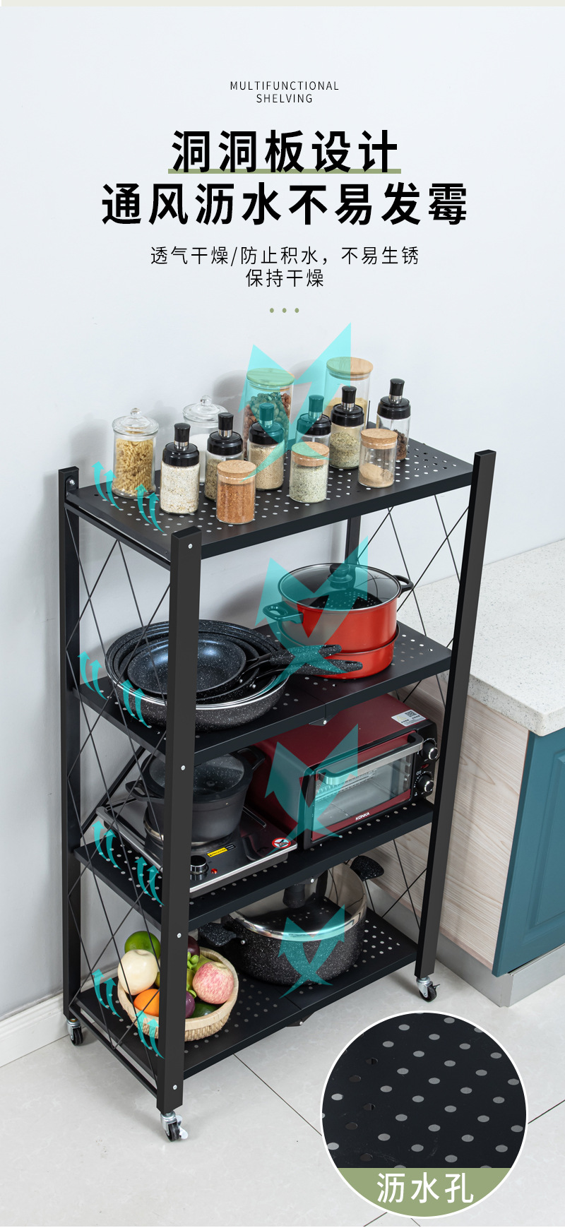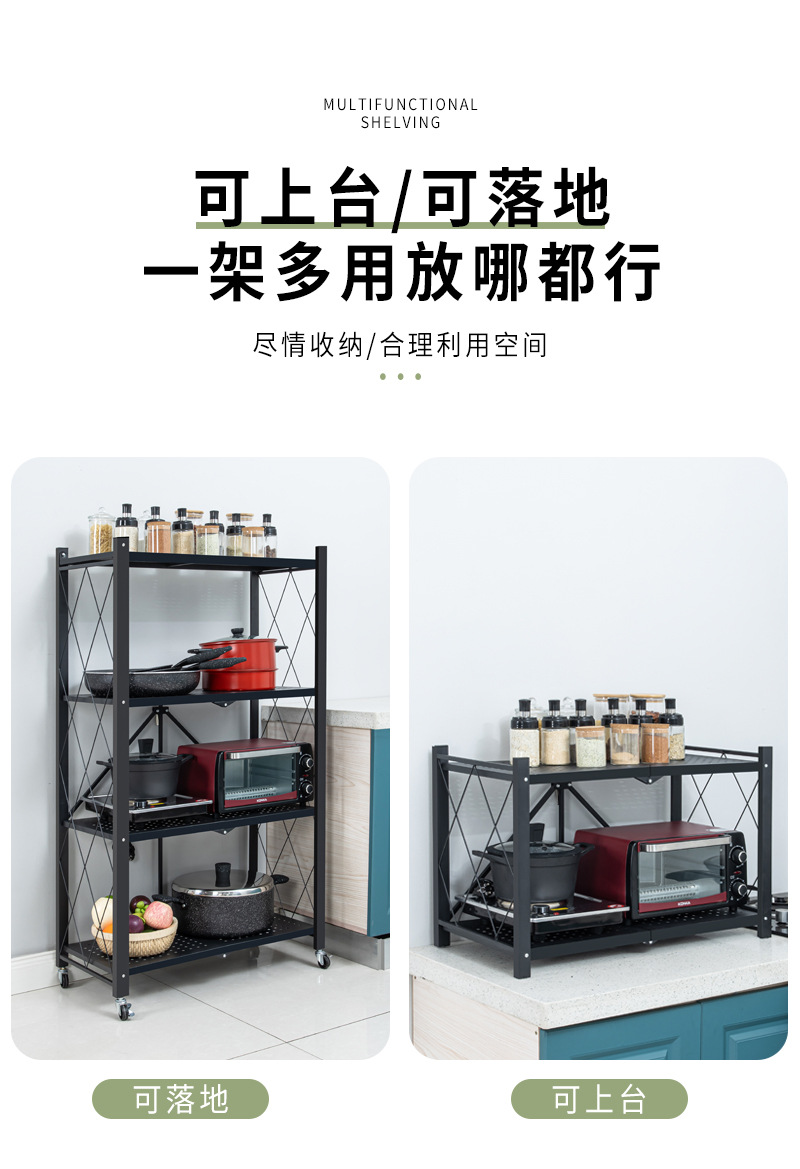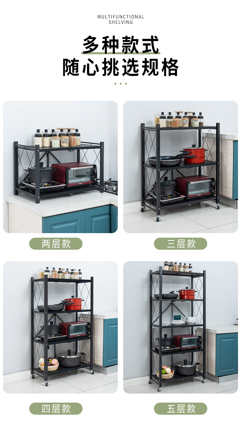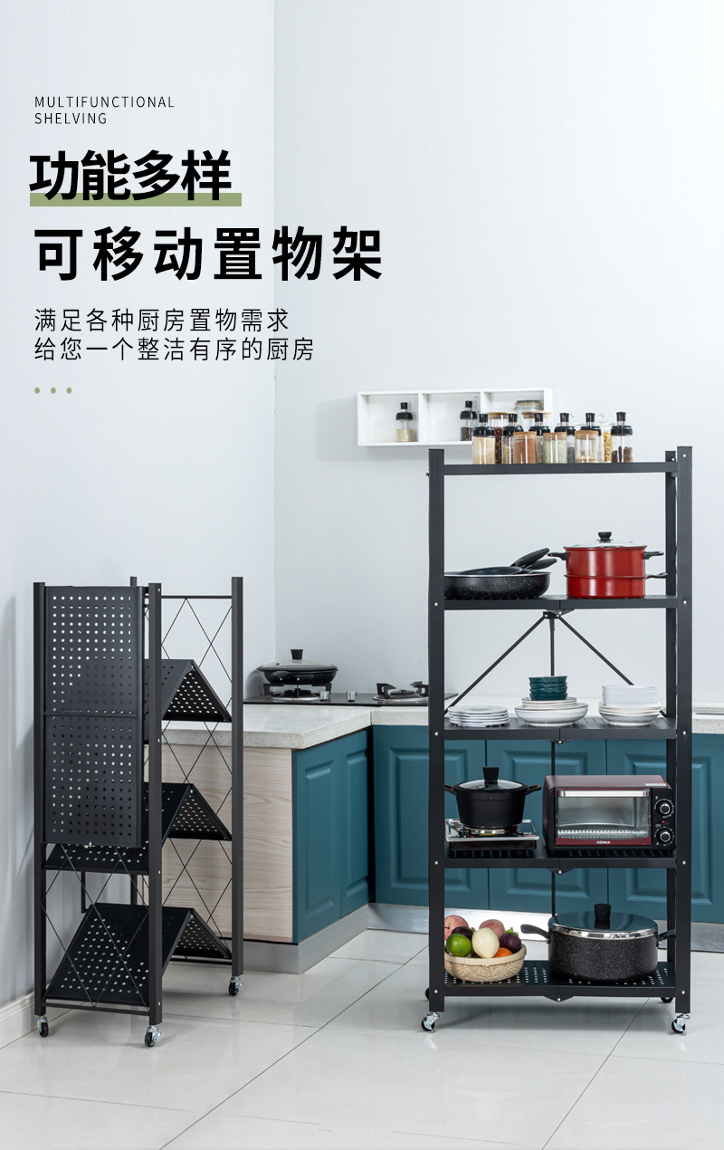 설치 무료 접이식 보관 랙 가정용 다층 바닥 구멍 보드 보관 랙 주방 조리기구 오븐 보관 랙