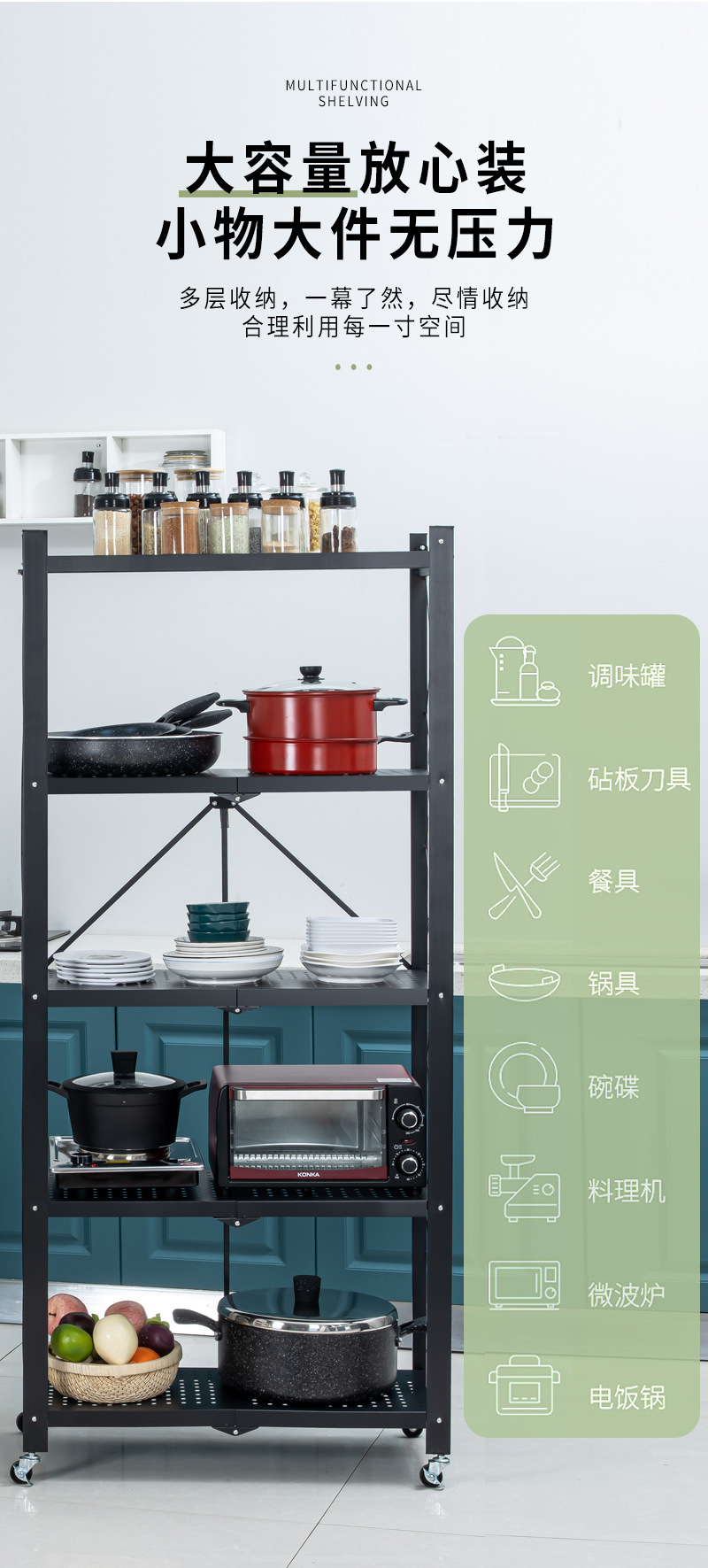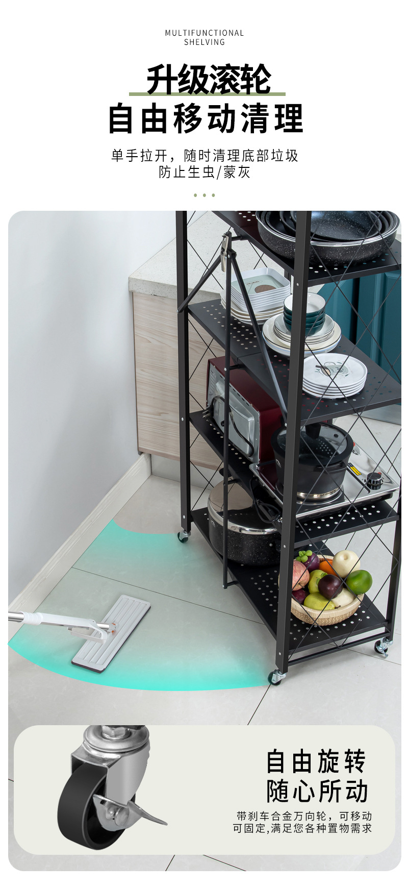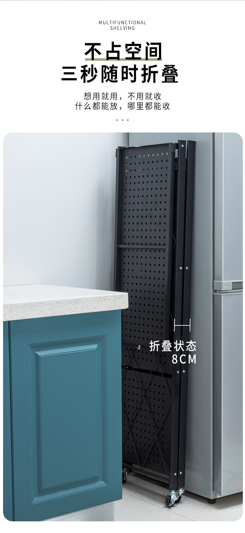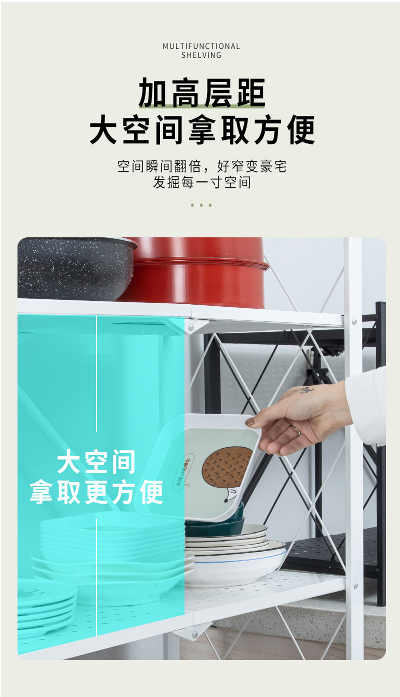 설치 무료 접이식 보관 랙 가정용 다층 바닥 구멍 보드 보관 랙 주방 조리기구 오븐 보관 랙