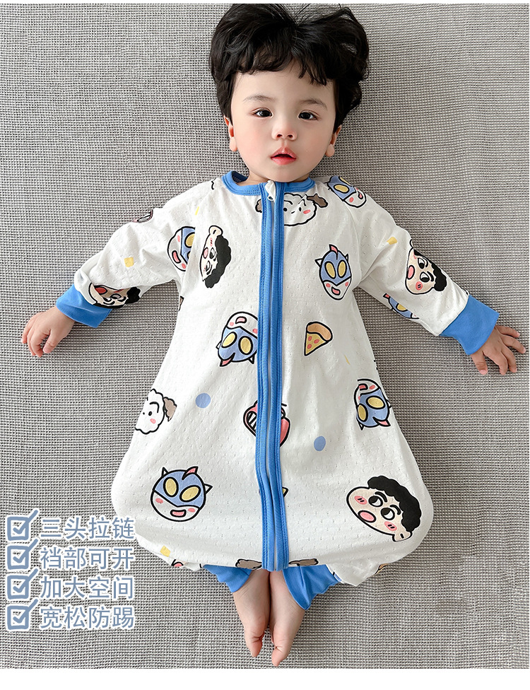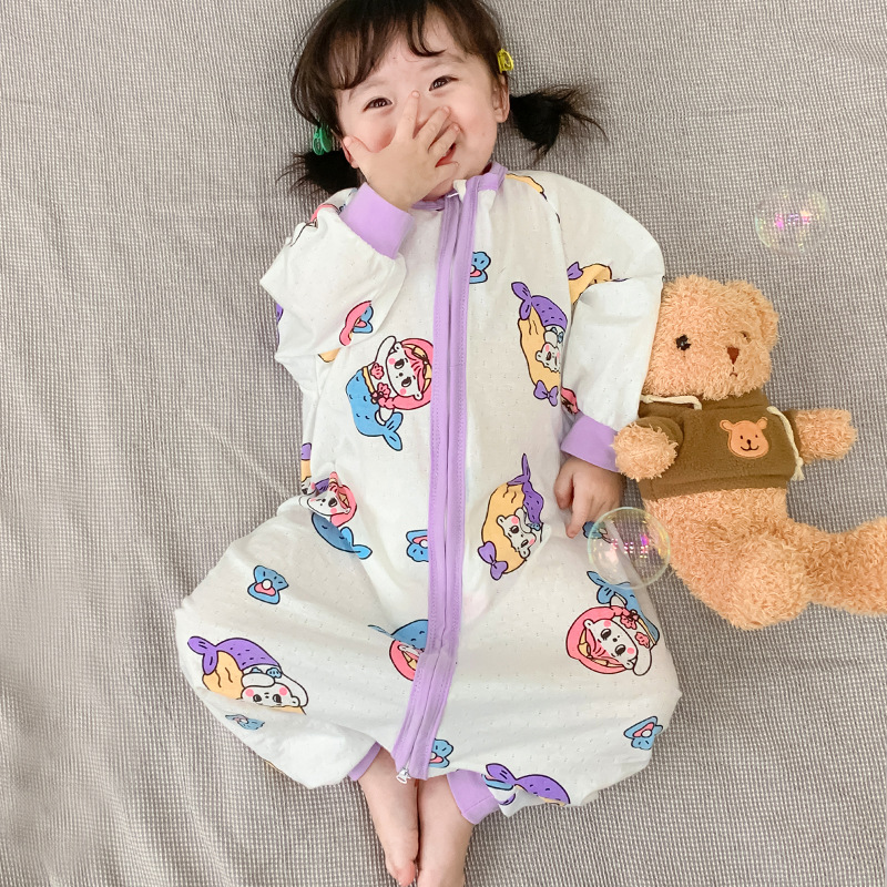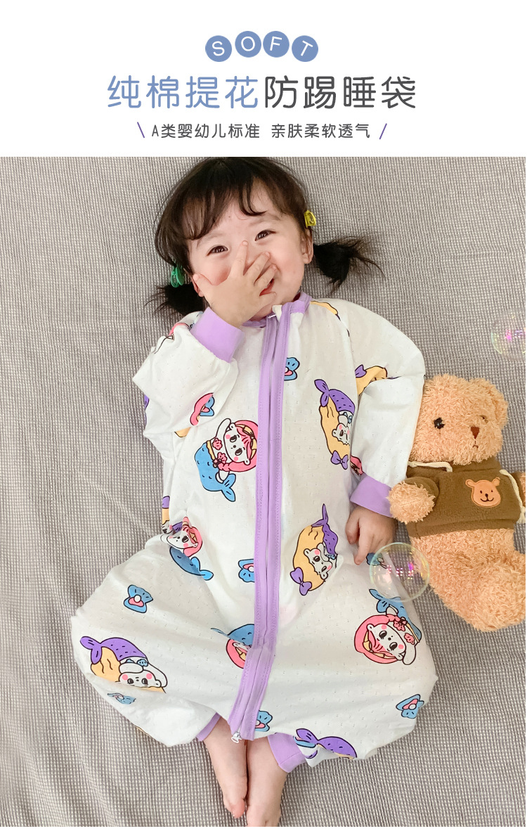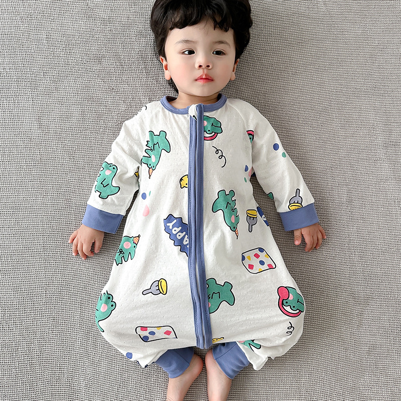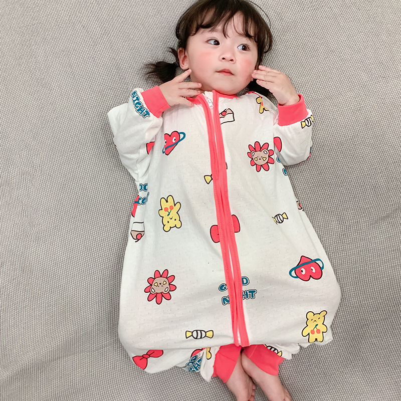 아기 침낭 봄과 여름 면 베이비용 원피스 스플릿 레그 침낭 남성 및 여성용 어린이 발차기 방지 잠옷 사계절 유니버설스토어 가기
