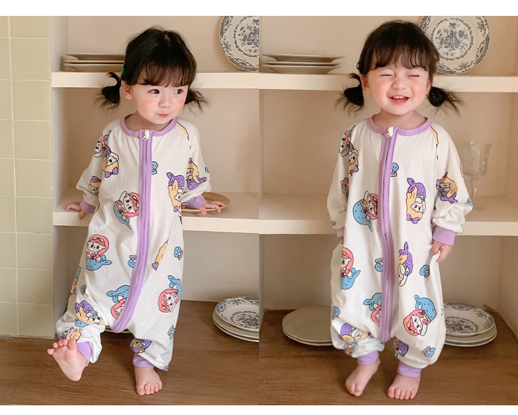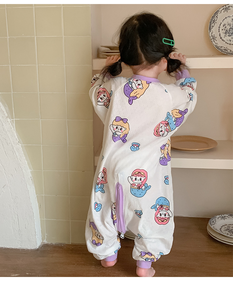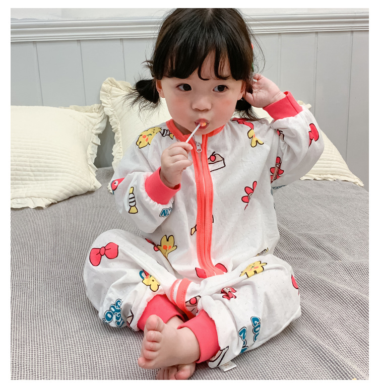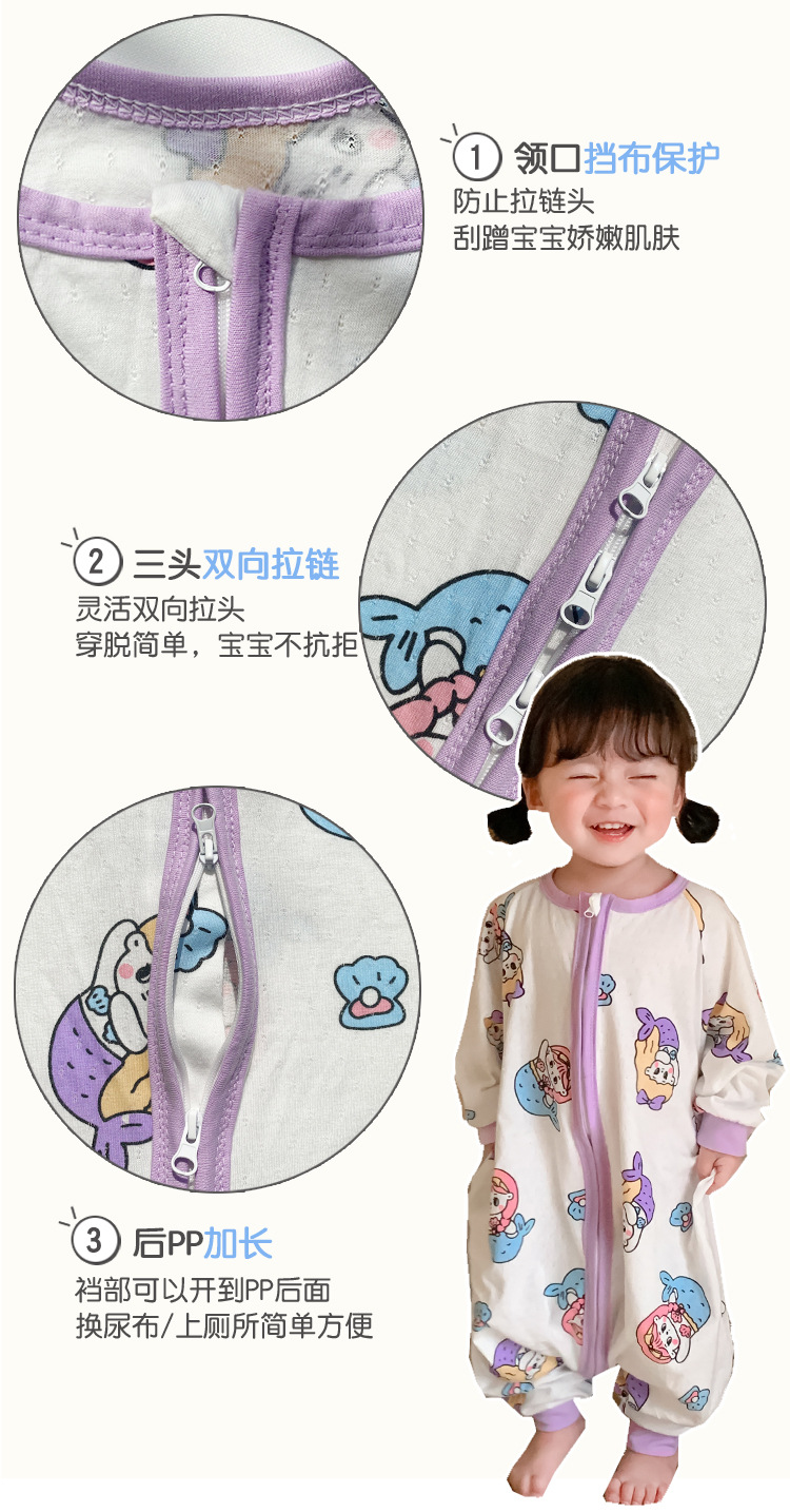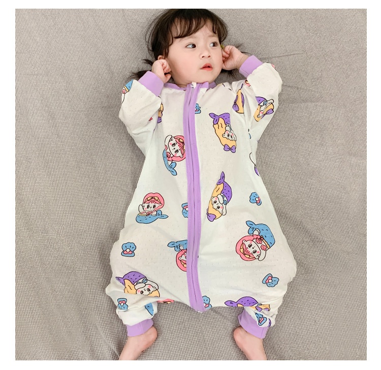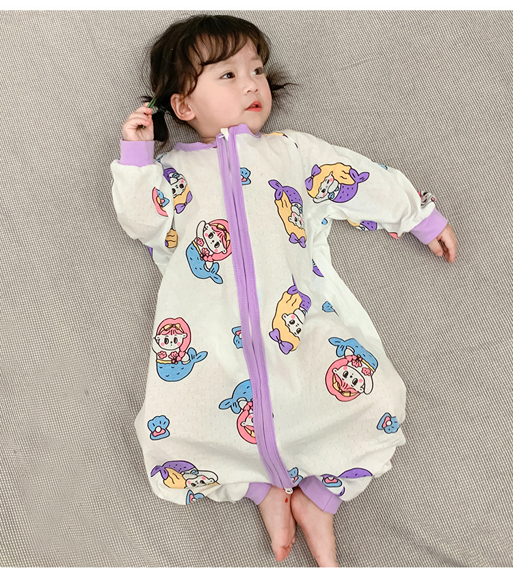 아기 침낭 봄과 여름 면 베이비용 원피스 스플릿 레그 침낭 남성 및 여성용 어린이 발차기 방지 잠옷 사계절 유니버설스토어 가기